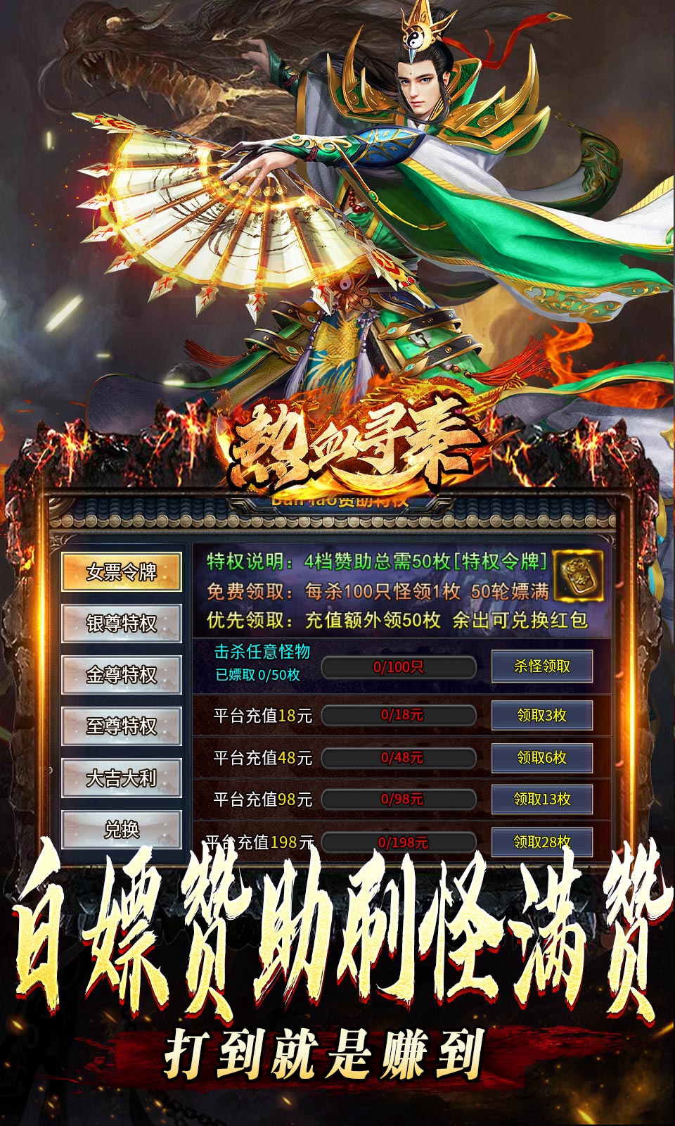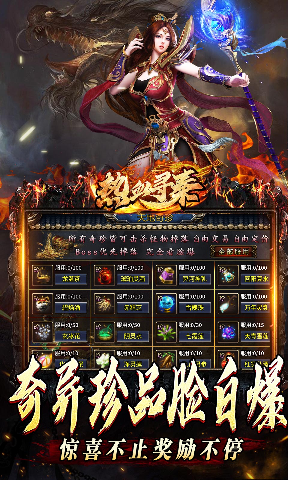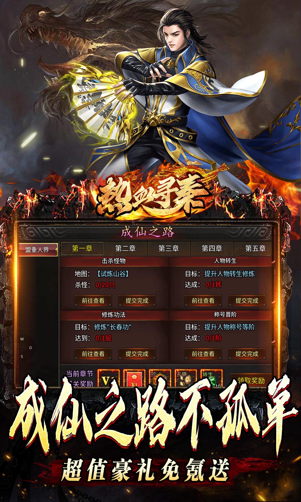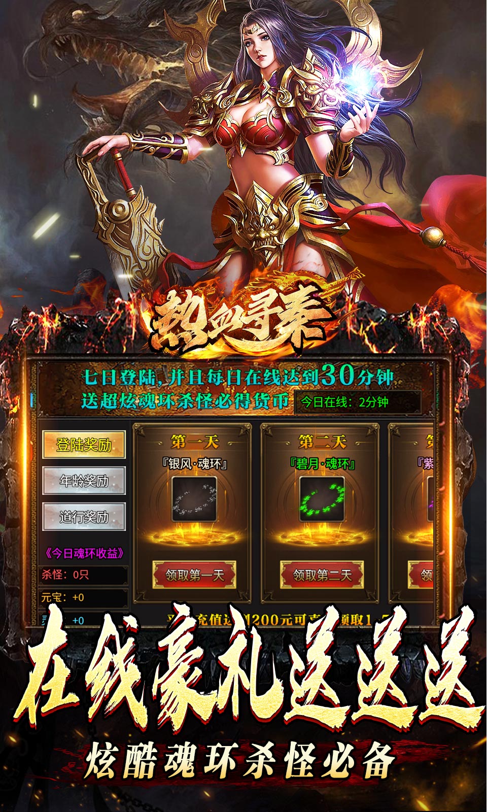 1、七日登录送豪礼炫酷魂环杀怪必备!!2、成仙之路超值奖励等你来领!!3、奇珍异宝脸白爆所有,快来试试运气吧!!4、免氪赞助杀怪满特权,打到就是赚到!!5、身外化身另一个自己获超强助力!!
