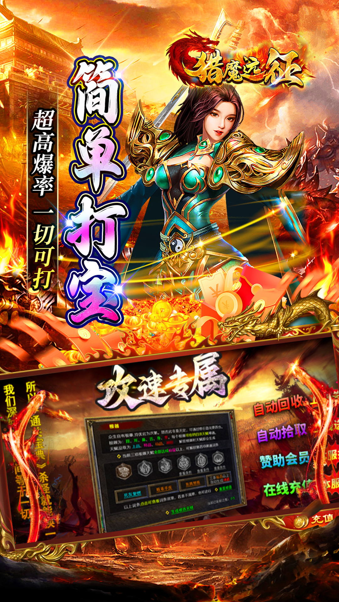 ★首冲免费,助力零氪!★自动拾取,回收,巡航挂机,全送!!★金蛇献瑞送红包,福利大厅万元豪礼!!★轻松挂机提升打杀怪物提升道行换一切!!★野外刷B0SS,爆充值、爆专属、好运爆爆爆!!