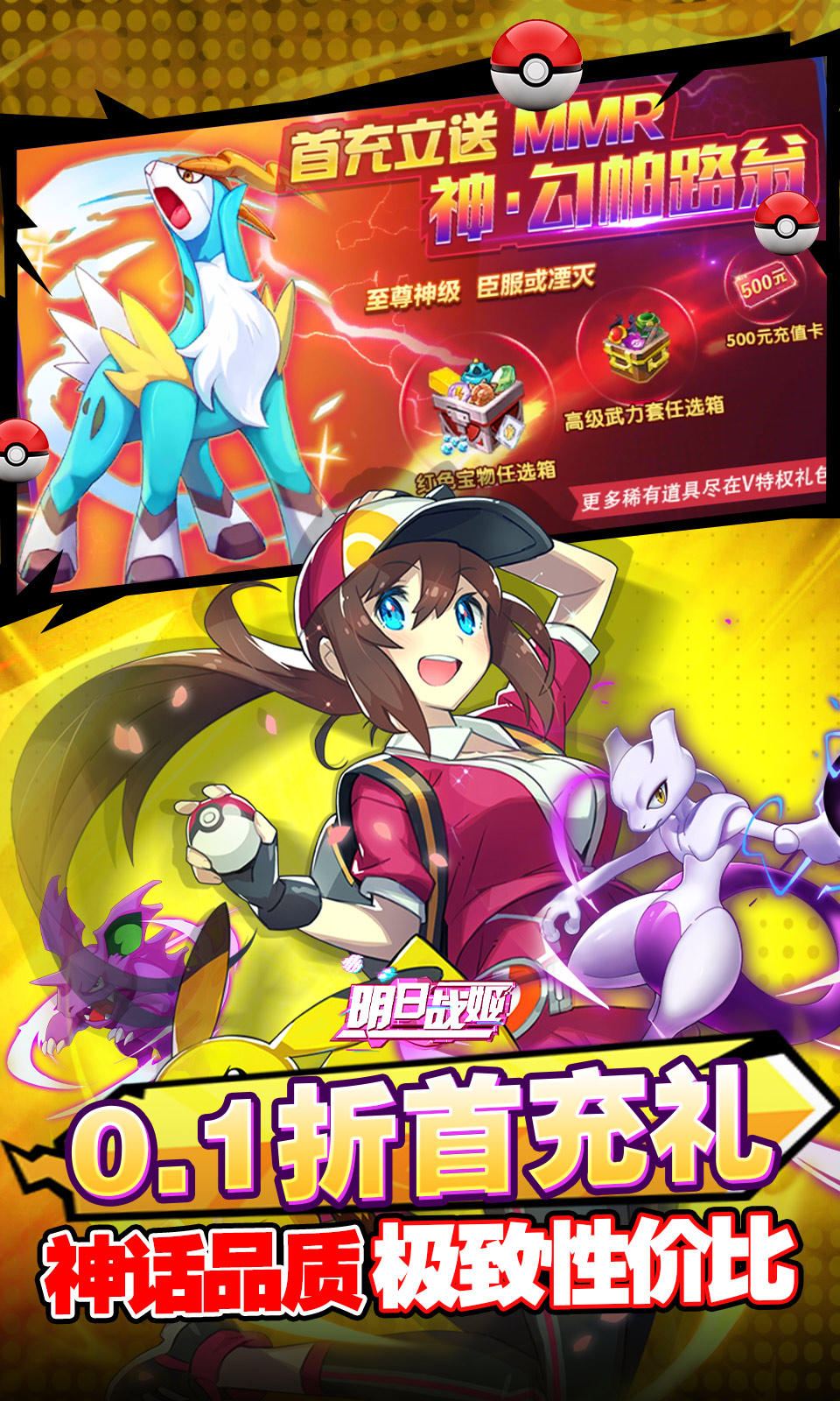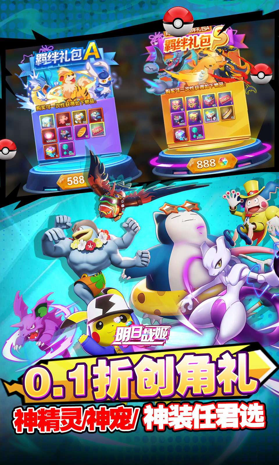 1、0.1折抄底价:所有充值档位永久享受0.1折!2、0.1折新神话:神话降世0氪也能畅玩宝可梦!3、0.1折首充礼:首档首充免费送,豪华礼包神话品质!4、0.1折创角礼:开局5万抽,神精灵/神宠/神装任君选!5、0.1折无限礼:无限精灵/无限装备/无限进化,尊享特权开启永久免费!