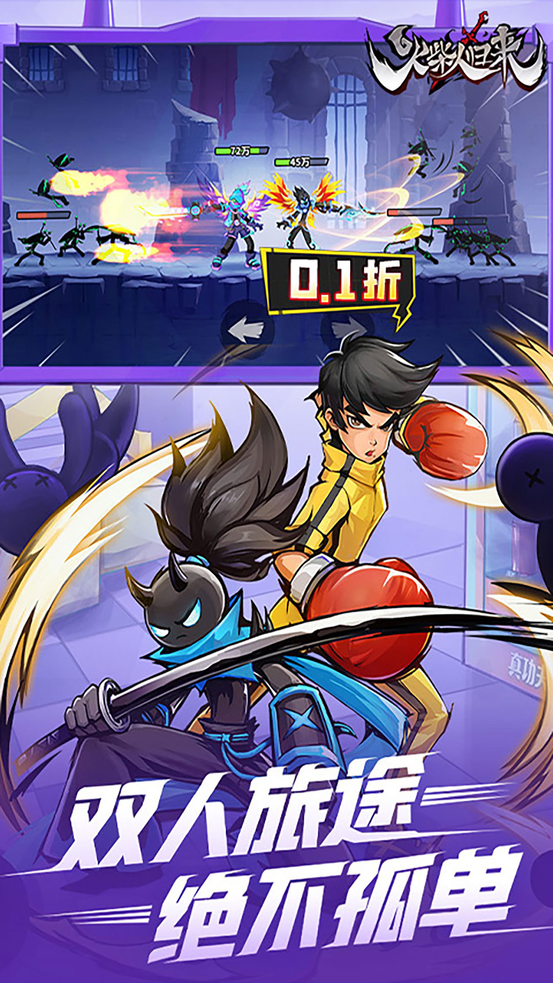 《火柴人归来-0.1折GM版》是《火柴人联盟》的超爽割草手游,这次带来热血福利:下载即享0.1折超值特惠,看广告就送648代金券,豪礼领不停!享受畅快淋漓的打斗体验,成为最强火柴人王者!