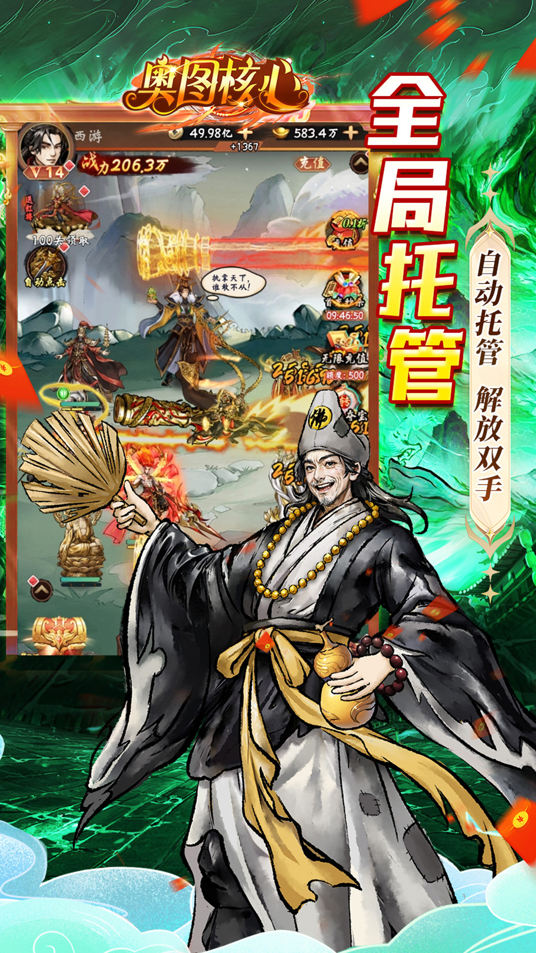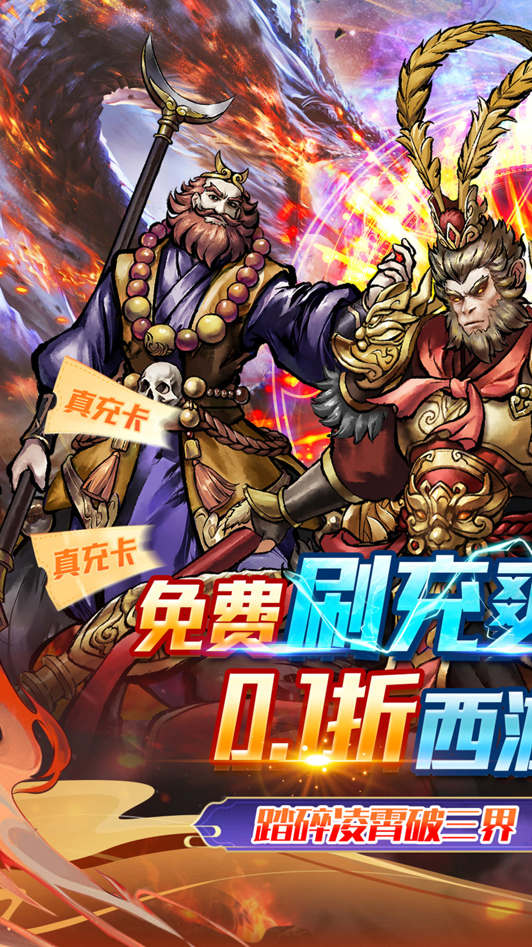 ★★【0.1折天命服】游戏内所有充值享永久0.1折福利;★★【免费送充值】内置免费充值入口,无限免充超爽打金;★★【万元红包】超值福利,万元真充红包等你来领;★★【免费千抽】强力红将闯关轻松获取;★★【零元嗨购】超值礼包0元暴爽抢购;★★【全局托管】自动闯关解放双手;★★【游历三界】众神集结,体验不一样的西游冒险;
