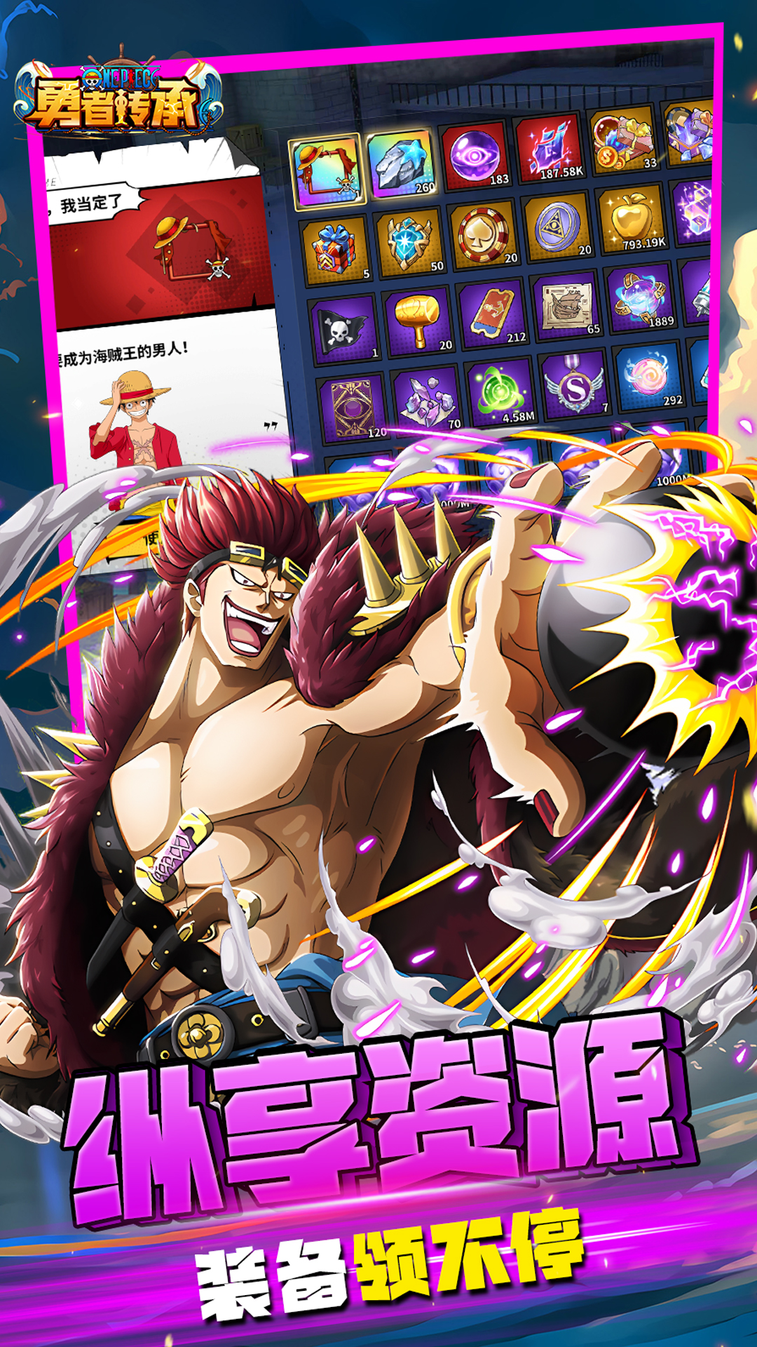 《勇者传承(0.1折送尼卡路飞)》是一款以经典动漫《海贼王》为核心打造的沉浸式卡牌手游。游戏剧情还原伟大航路的壮阔篇章,精心复刻路飞、索隆、艾斯等超人气角色,通过高精度立绘与原著声优配音,构建原汁原味的航海世界。