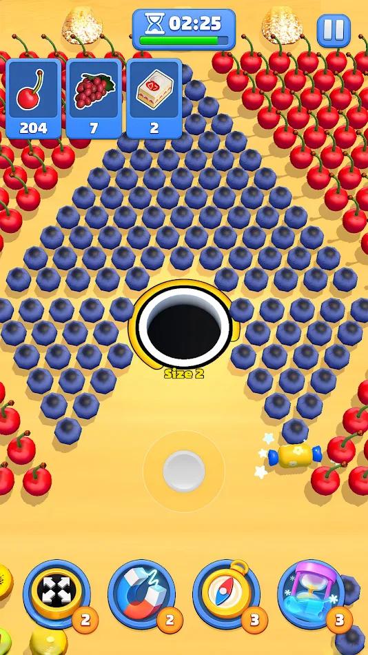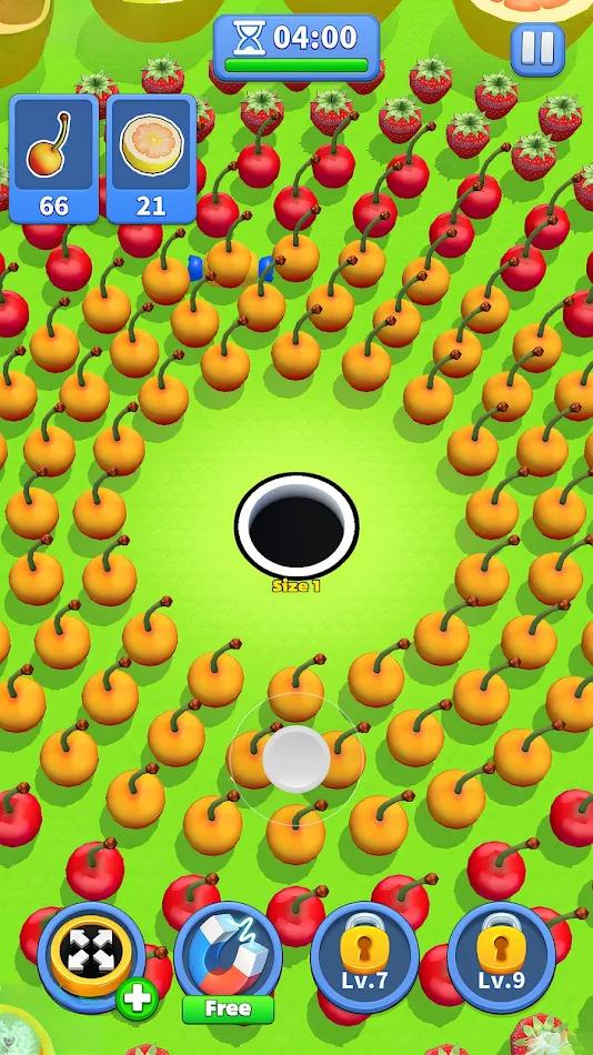 移动地面上的黑洞,找到微小的物品、水果并收集它们。升级并扩大黑洞的范围以吞噬更大的物品。从小苹果到大西瓜,全力以赴完成关卡的目标和挑战。