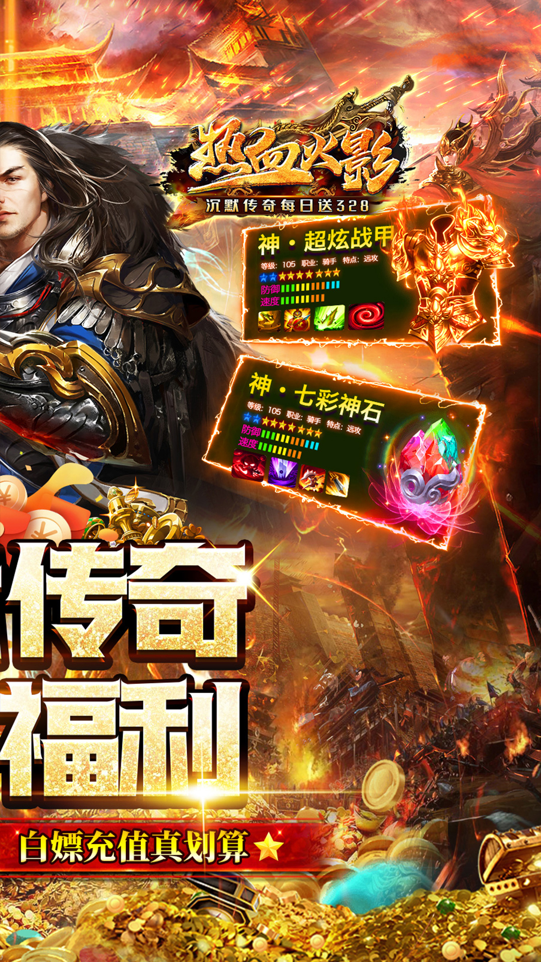 ★充值比例1:10灵符,上线送极品称号。★每日可领3280代金券,白嫖充值爽到爆。★在线可领大量元宝、金币、实物(可兑换代金券)。★杀怪可提升属性和道具,打怪提升两不误。★新区冲刺,大量豪礼代金券免费拿。★刀刀切割,沉默传奇!等你来战!