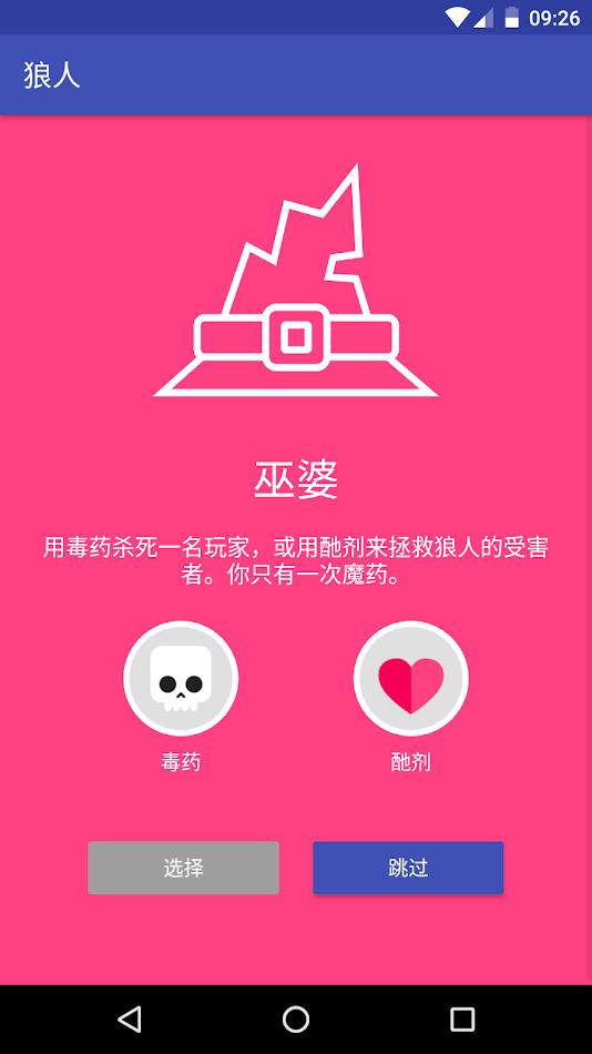 如果你想玩《狼人》派对游戏(也被称为《黑手党》),但你所缺少的是一套卡,你不想使用笔和纸,这个应用程序是给你的。只需配置参与的玩家数,你想使用的身份(例如多少个狼人等),然后开始游戏。然后,您将可以把设备交给你,每个玩家都可以点击来查看自己的身份。