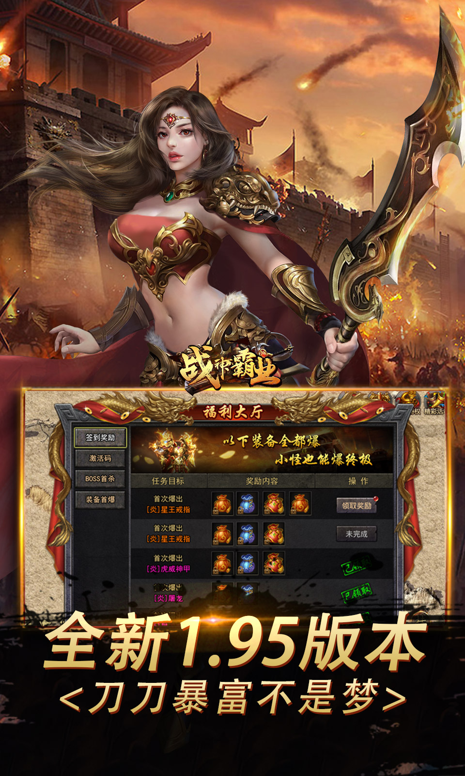 全新上市经典1.95专属超变无限刀,充值全靠打!上线免费领冠名称号打宝神兽和超强属性!所有功能以及装备皆可得,打怪致富,免费直接可达战力天花板!各种活动漂不停每日红包领领领真的就是这么爽!本服装备及货币材料保值率非常高,大幅促进玩家直接的交易!全新玩法开创超变新潮流,续写我们的经典回忆!