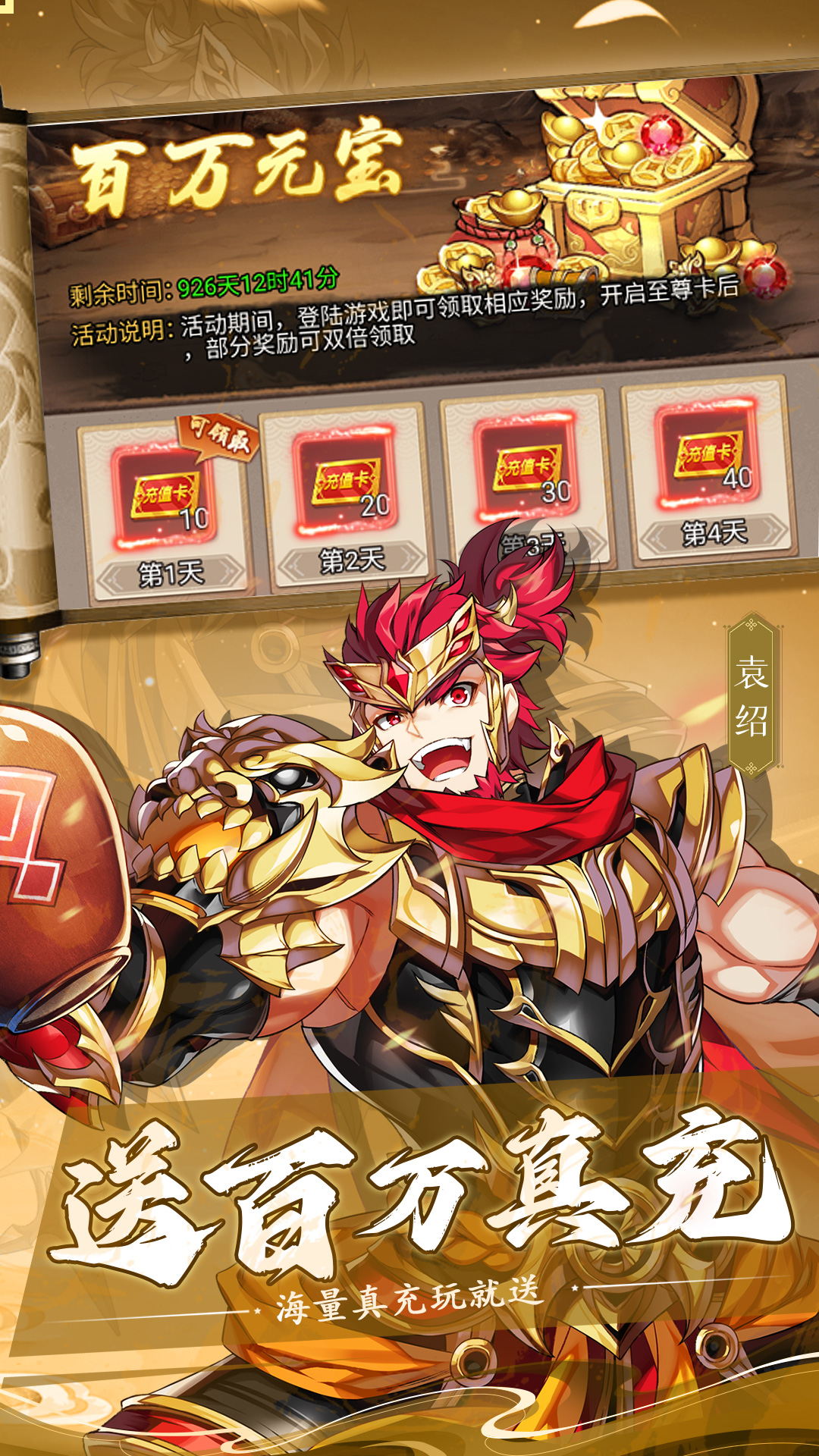 【送真充】上线即送百万真充,福利拉满爽到爆!【真摸鱼】一键扫荡一键养成,解放双手快乐摸鱼!【领豪礼】签到送海量养成道具和装备,丝滑推图轻松养成!【送代金券】进游即送满减代金券,免费首充来就有!