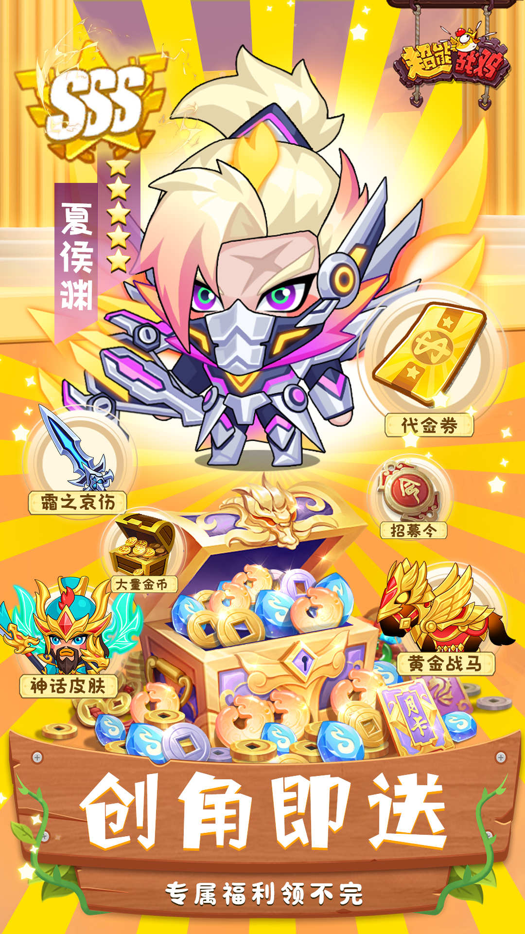 1、所有充值0.1折;2、每日赠送6500代金券;3、连续闯关送千次招募。