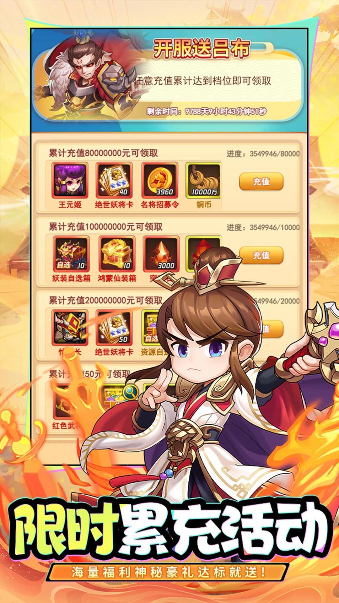 1、0.05折免费买断版,充值瓜分百万元宝!每日狂送6480线下代金券轻松毕业2、豪华资源礼包内置全拉满道具、线上活动送红包碎片,最高可获得每日10000真充红包!3、永久帝王GM神权!专属商店豪礼享不停!4、低价终极月卡,专属赞助,神秘转盘,助力三国称霸!5、全新资源养成系统,全道具真买断,累充达标直接送!