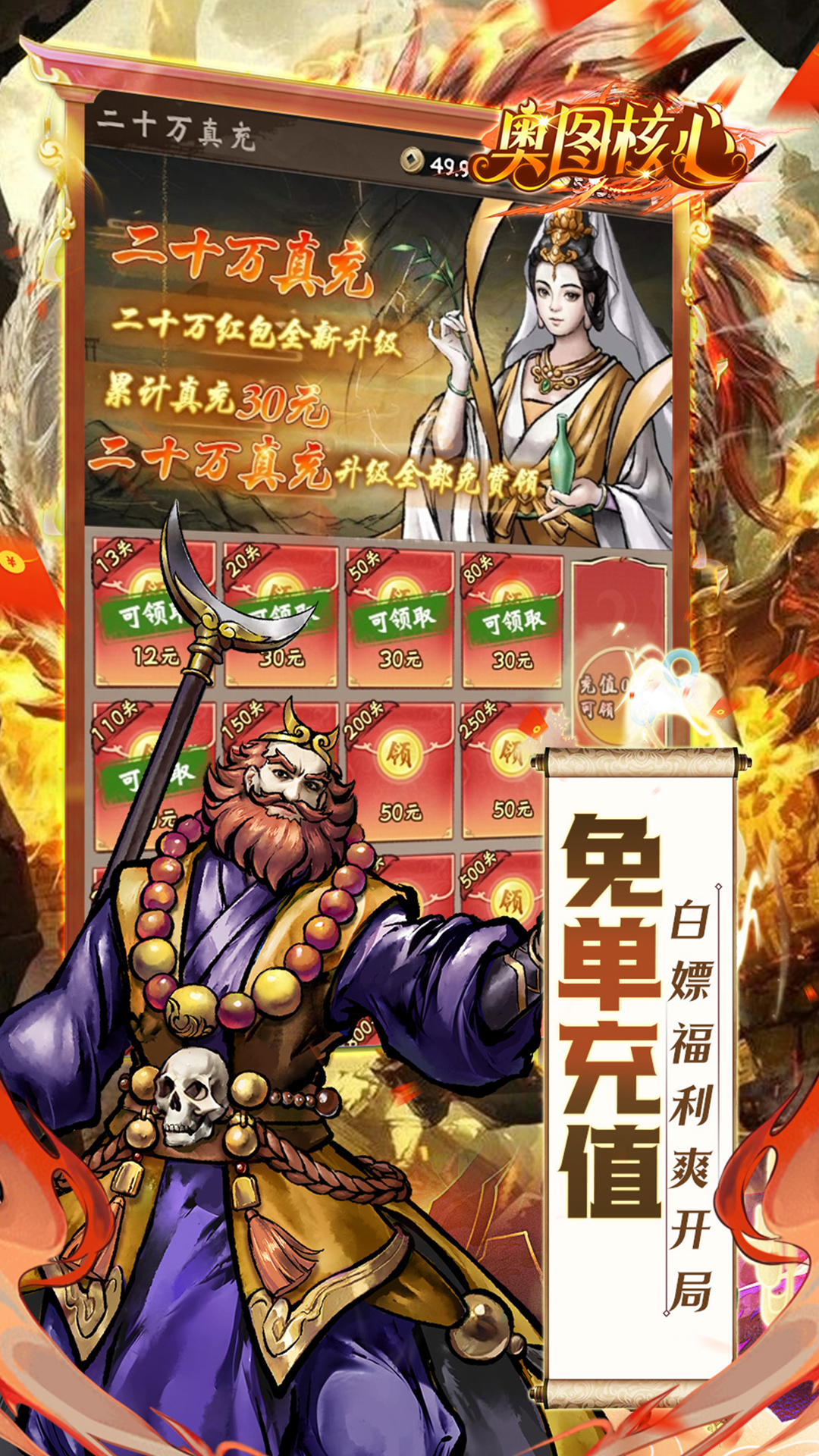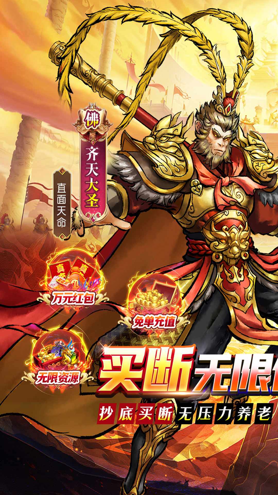 ★★【0.05折】游戏内所有充值享永久0.05折福利;★★【代金超返】折后实付充值4千元买断代金,超高比例返还不花冤枉钱;★★【免费送充值】内置免费充值入口,无限免充超爽打金;★★【万元红包】超值福利,万元真充红包等你来领;★★【免费千抽】强力红将闯关轻松获取;★★【零元嗨购】超值礼包0元暴爽抢购;★★【游历三界】众神集结,体验不一样的西游冒险;