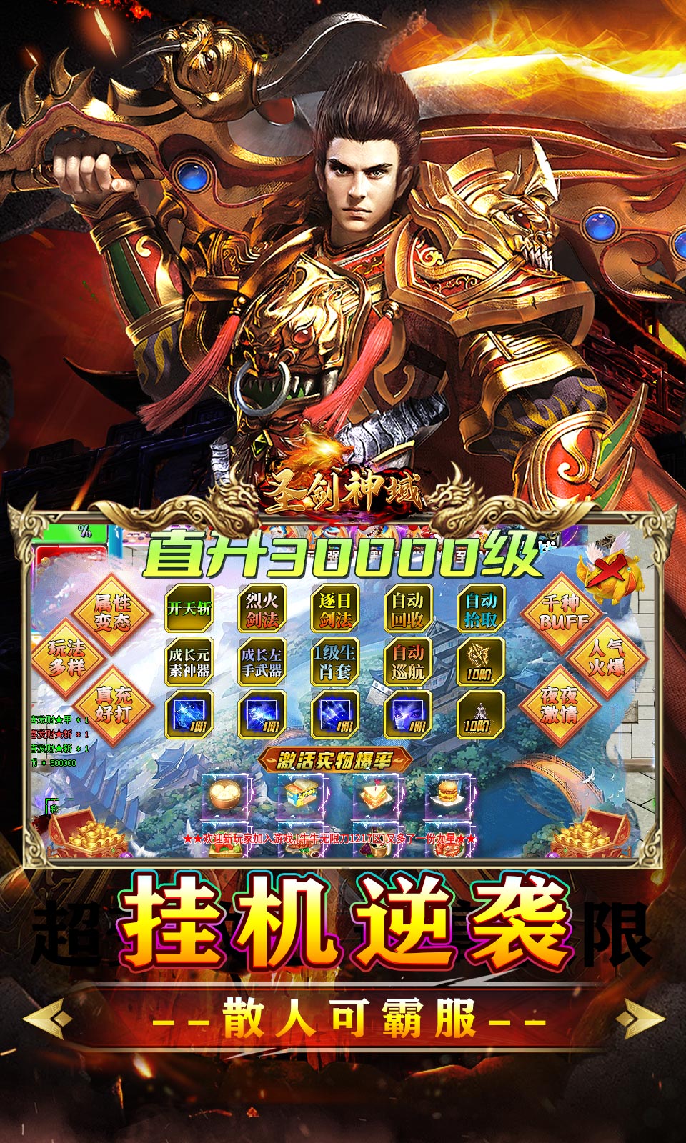 上线就送狂暴之力、赞助大使、冠名称号、群切特权、至尊会员、百种装扮、自动回收、自动巡航、万亿切割、千种BUFF,开局福利顶满!!!刀刀充值点的虚假礼包弱爆了!我们要爆就爆五块十块的平台充值!纯挂机能逆袭,打BOSS脸白一样登顶!散人吃饱,老板玩好,暴爽娱乐吃肉两不误!超变,专属,沉默,暗黑,神器,忘忧,二合一,我们全都有!!!所有玩家都能在这里找到自己的那一份快乐!!!