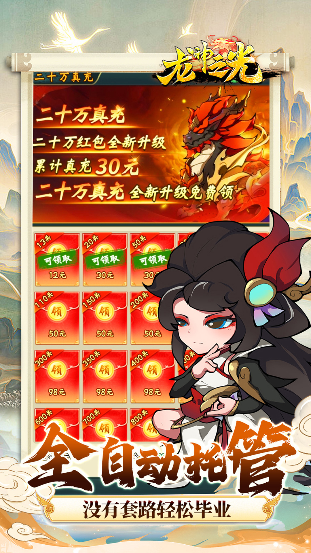 重温经典,共赴山海。《龙神之光》是一款高度还原山海经的咸鱼放置卡牌游戏。游戏中可以收集到众多的奇珍异宝和山海神兽,玩法轻松休闲福利全面升级,还有超多免费充值燃情助力。革新融合多重PVE、PVP玩法和趣味养成路线,全自动托管让游戏变得更为简单,即刻开启全新山海旅程!
