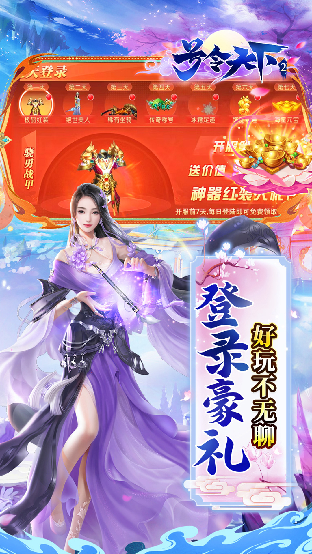 《号令天下2》是一款全新国战题材mmo手游,三国鼎力,携手美人,召集名将,攻城掠阵,征战天下!0.1折的价格,每日签到即可领取代金券,不花一分钱也能体验充钱的乐趣,游戏更有海量福利,丰富活动,精美的画质,炫酷的技能,等主公您体验。享受君临天下的无上荣耀~