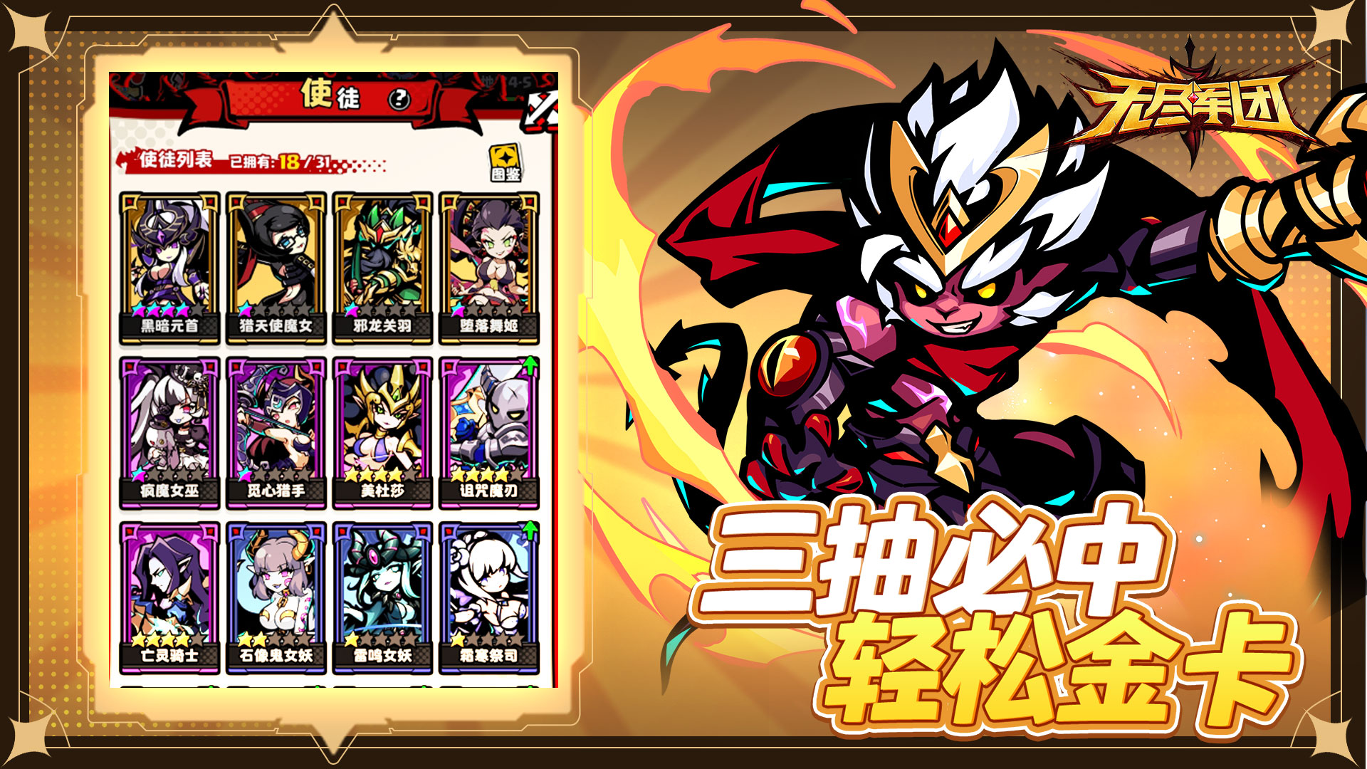 【三抽必中, 秒出金卡】 登录就送百连抽,全阵容使徒免费送!告别氪金无底洞,仅需三抽必定出金卡。不管是高冷祭司,还是性感魅魔,成熟的魔王全都要!