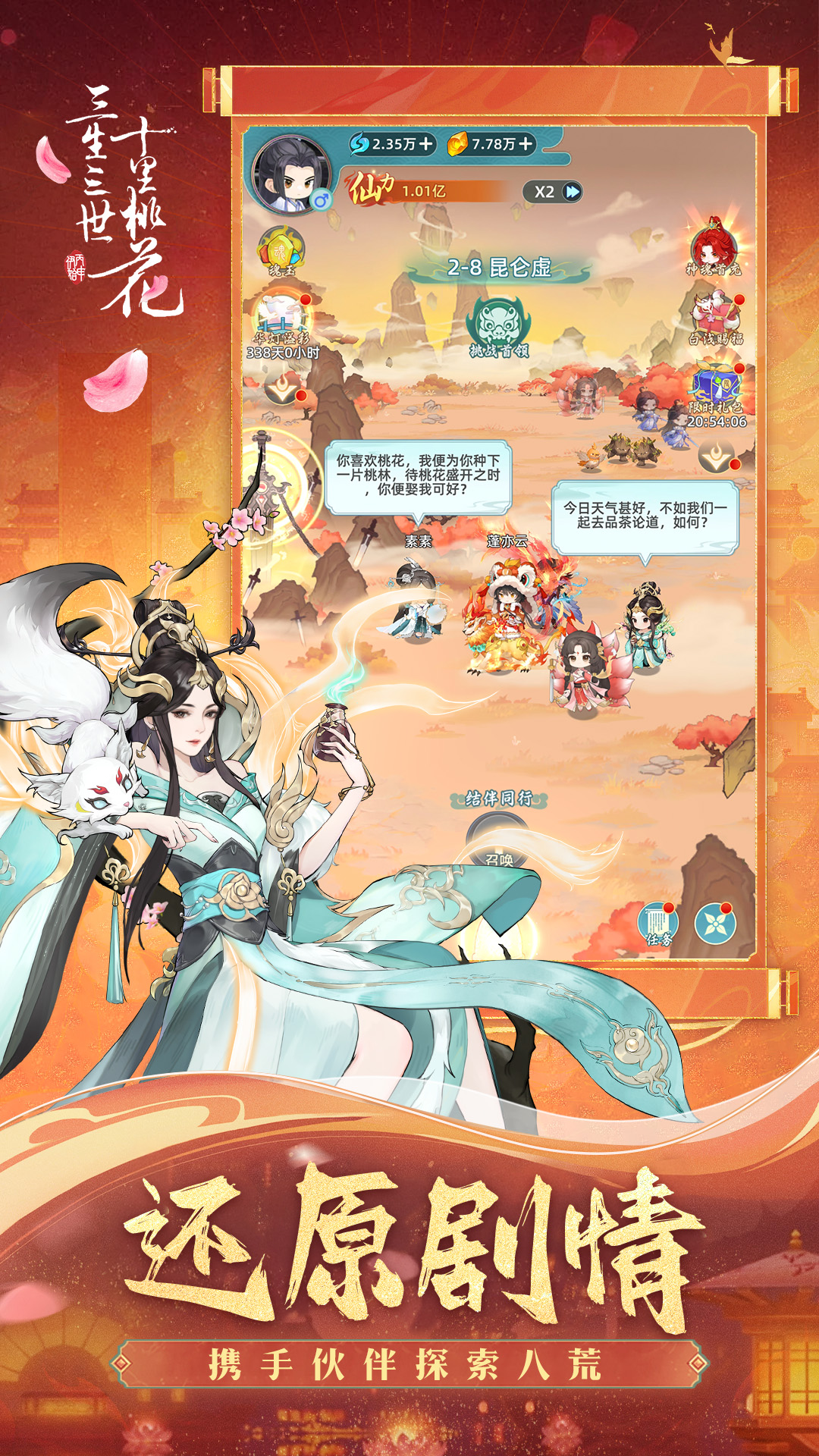 《新三生三世十里桃花》是唐七公子同名小说正版授权的3DMMORPG手游。您将亲历白浅与夜华跨越三世的爱恨纠葛,御风探索四海八荒的绝美盛景。游戏提供六大职业选择、震撼的BOSS挑战以及命格觉醒、仙缘合击等创新玩法,更可缔结情缘,在宏大的国风仙侠世界中书写属于自己的轮回篇章。
