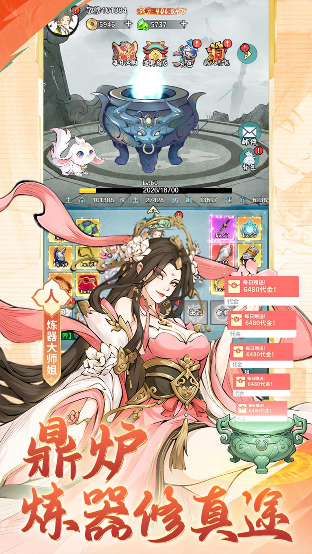 1、重磅0.1折GM后台买断开鼎炼器开箱全新上线,每日登录就送6480代金券!2、线上内置GM后台买断,轻松买断所有道具、材料,拉满全系统,累计使用即可开启免费买断3、材料直接送!进游戏直送全系统材料9999!再无养成焦虑!更有天命特权每天登录尊享专属代金,每天上线元宝领不停!4、秘宝奇遇抽限定神装称号,鬼斧神工炼自选神宠,海量活动轻松助力全套毕业
