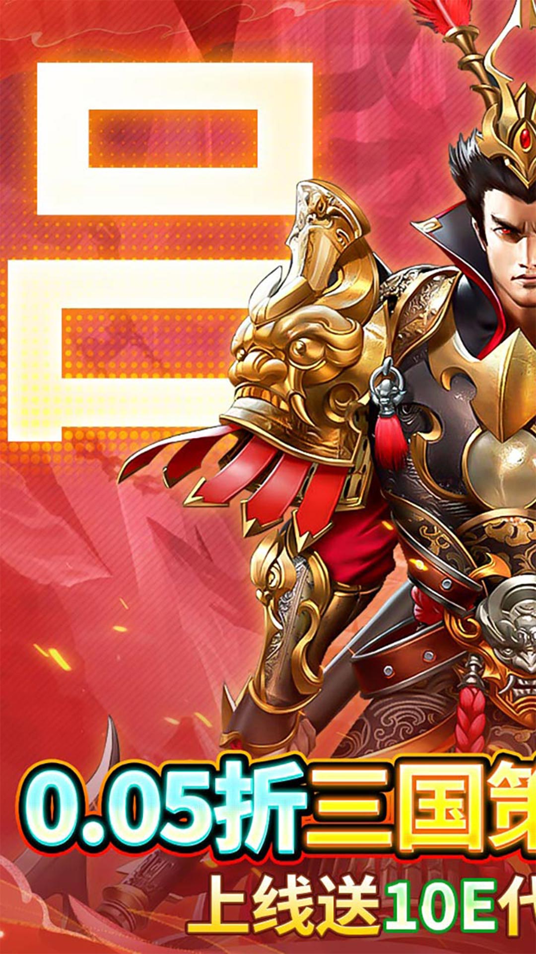 1、0.05折终极福利版本,上线即送10E代金券免费畅玩2、超值买断三国系统,全神将轻松轻松买断每日畅领3、登录赠送4万现金红包,无门槛使用,另送绝顶关羽霸气开局4、超级倍充,最高可达300%返利,百抽、元宝、真充随心领5、在线即领三国霸权,贵族15、特权礼包、海量道具想拿就拿