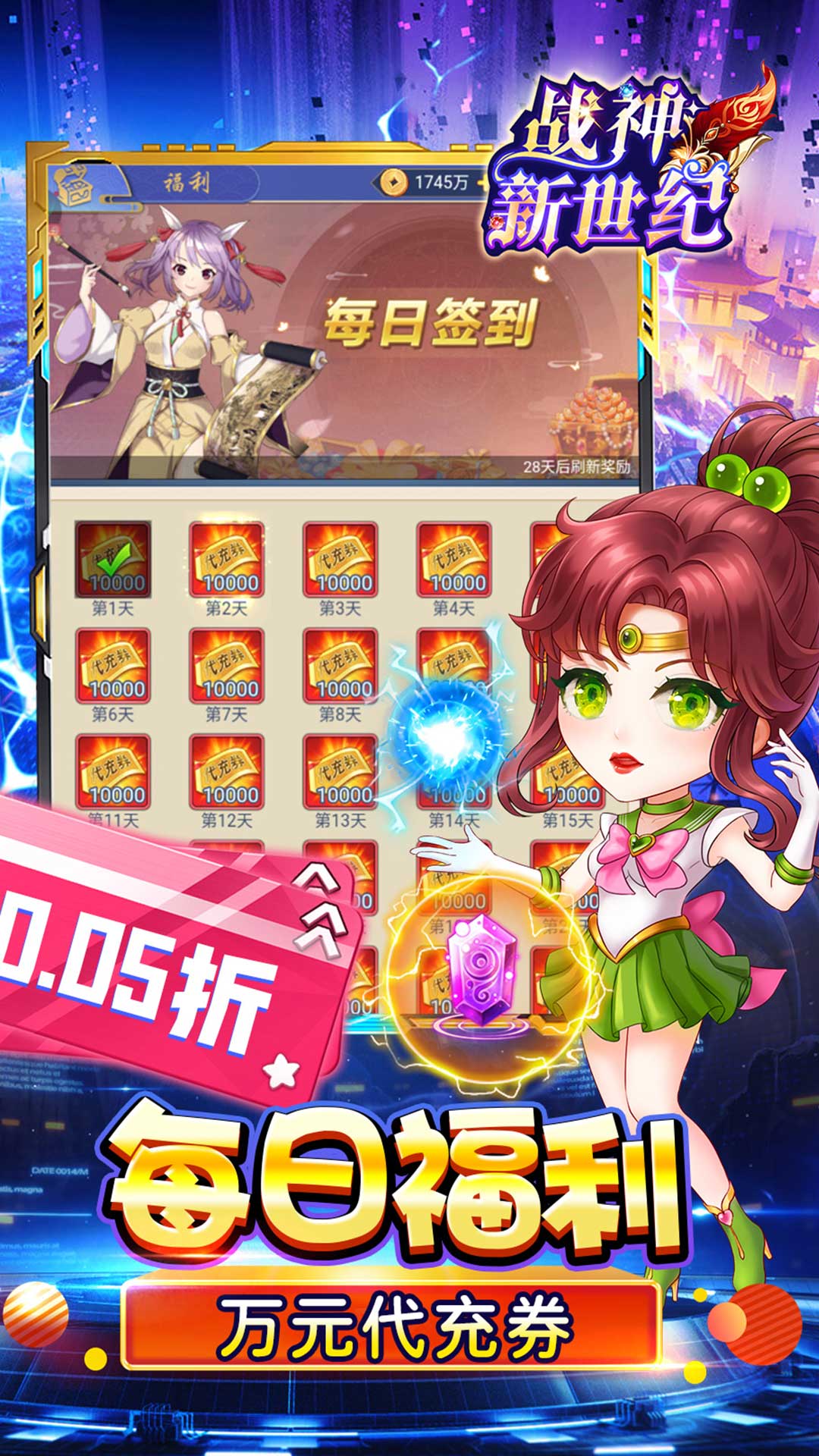 ★上线豪礼,登录就送真充卡、满V经验、GM点!!★每日福利,每日免费领取万元代充券!!★躺平特权,超值奖励每日领取!!★GM后台,GM修改器海量破解礼包直接购买!!★代币商城,大量代充券、代充币、GM点等你拿!!