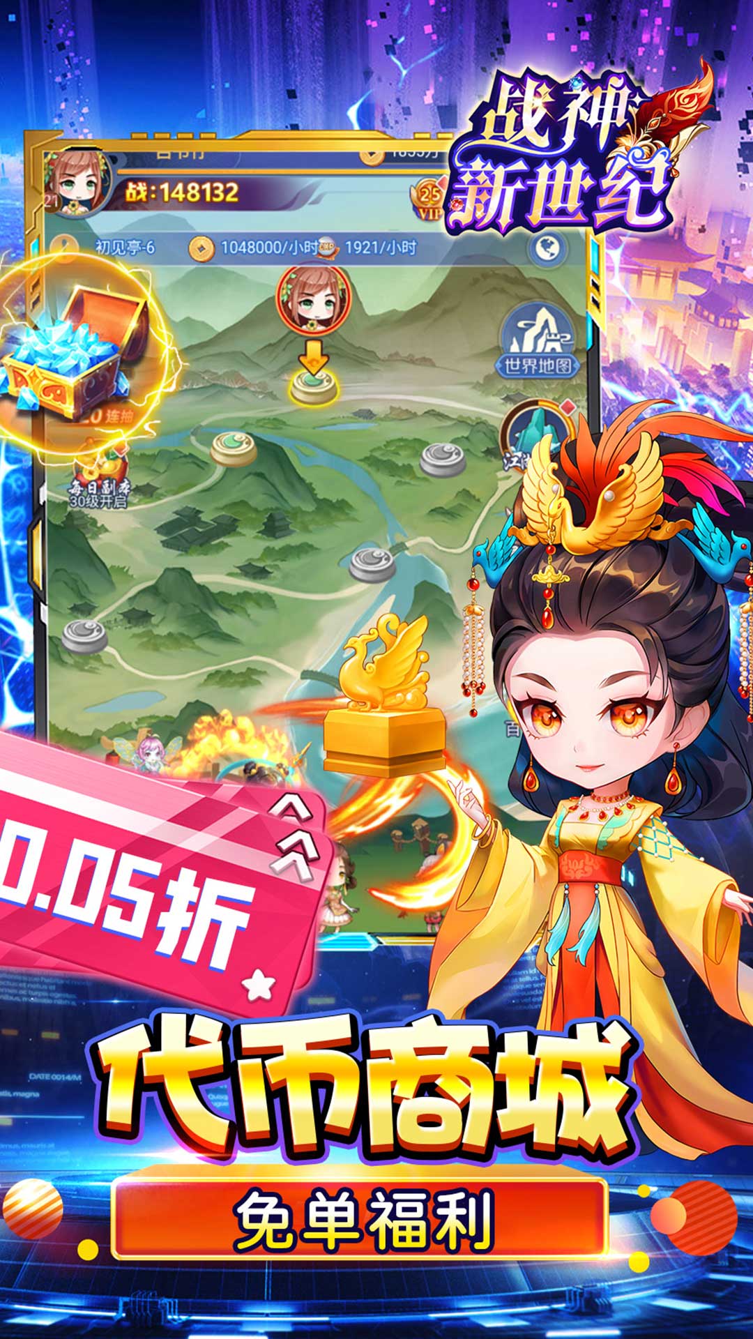 《战神新世纪》是一款Q版国风题材的卡牌+塔防回合制游戏。你将化身主公,带领女英雄们征战天下!游戏保留了经典塔防游戏的精髓,烧脑策略秀操作,在传统塔防的基础上,结合了策略、培养、战斗,每个武将也都各具特色。趣味的玩法,休闲的画风,简单的操作,原创“满屏技能释放”,带来燃尽十足的战斗快感,让战斗在你的指尖生动重现。