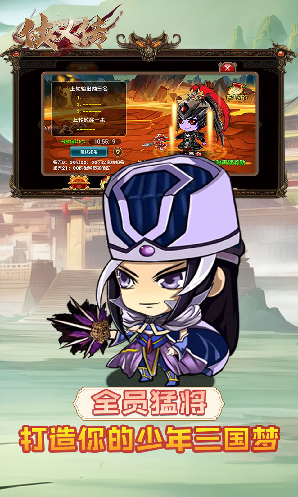 画面上,游戏采用 Q 版卡通画风,武将人物造型 Q 萌可爱。技能释放时独特的动作和特效,为玩家带来全新的作战体验和视觉享受。?