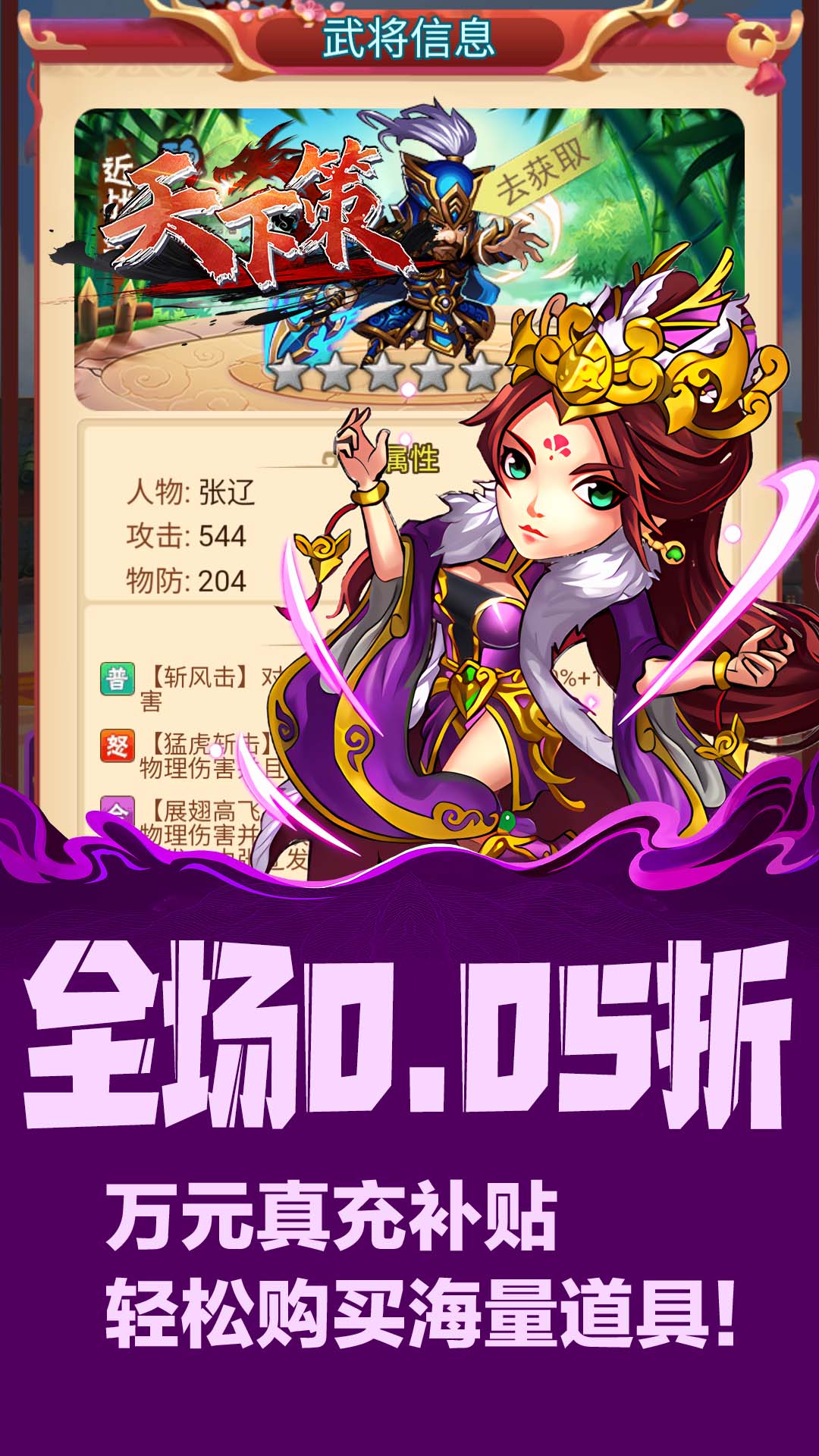 Q 版萌将集结!三国名将化身激萌武将,挂机放置轻松养成。独创护肝玩法,离线也能累积收益,碎片时间轻松打造超强军团。策略布阵搭配武将特性,酷炫技能自由组合,指尖微操定胜负。武将升星强化系统开放,专属装备随心搭。主线剧情还原经典战役,名将传记解锁隐藏剧情。无需爆肝,每日登录领丰厚资源!立即组建 Q 萌三国战队,开启轻松称霸之旅!