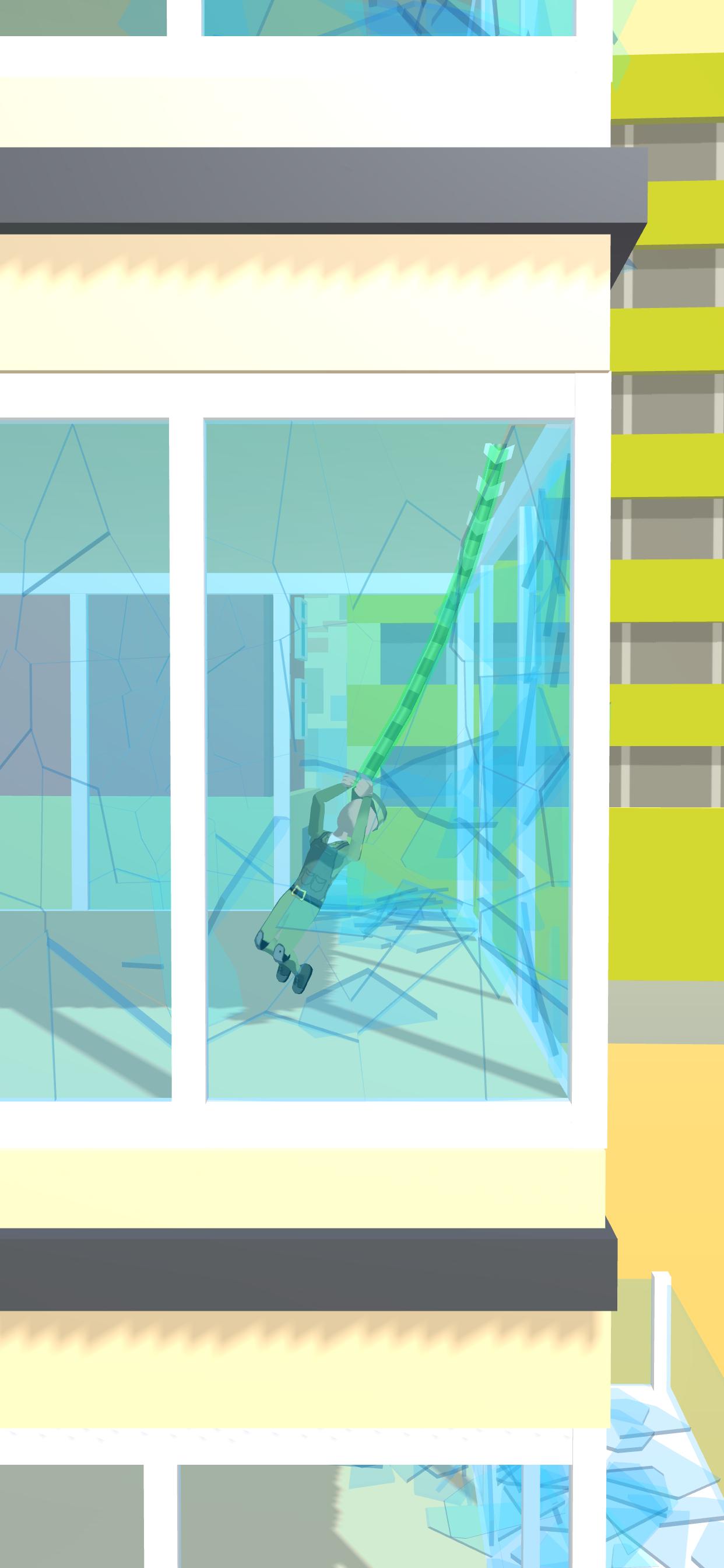 点击并按住绳子和蹦极的长度,沿着地板跳下来。