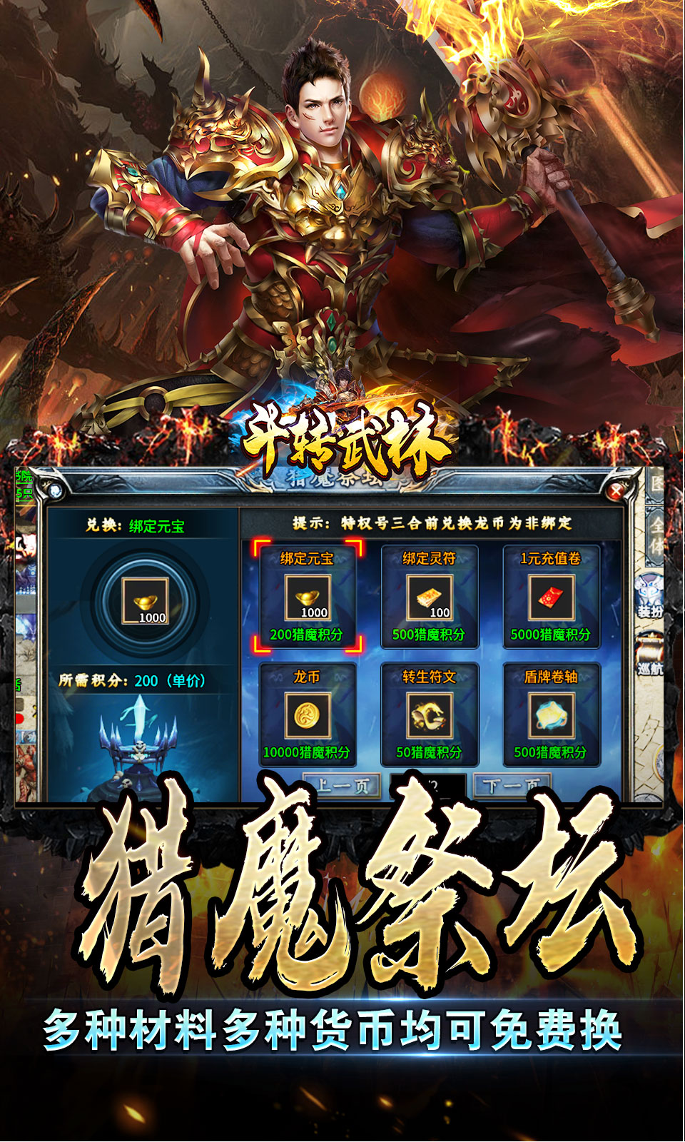 1.刀刀切割 自动拾取 自动回收 施毒术 绝版称号 夺宝钥匙*1002.[猎魔积分]升级徽章获得猎魔积分加成,等级越高打怪获取的猎魔积分越高,猎魔积分可在猎魔商店兑换各种货币以及材料,时间就是金钱! ! !3 [九尾神狐]成长类型神器,前期发育打怪必不可少功能,后期更多属性等你来探索! ! !4.[剧情玩法]本服没有繁琐的剧情探索,所有剧情材料全靠爆,只能通过探索和打怪完成剧情任务,获得高额奖励! ! !5.[匠心巨制经典永续]致力于打造高质量、有深度,长期耐玩的精品版本