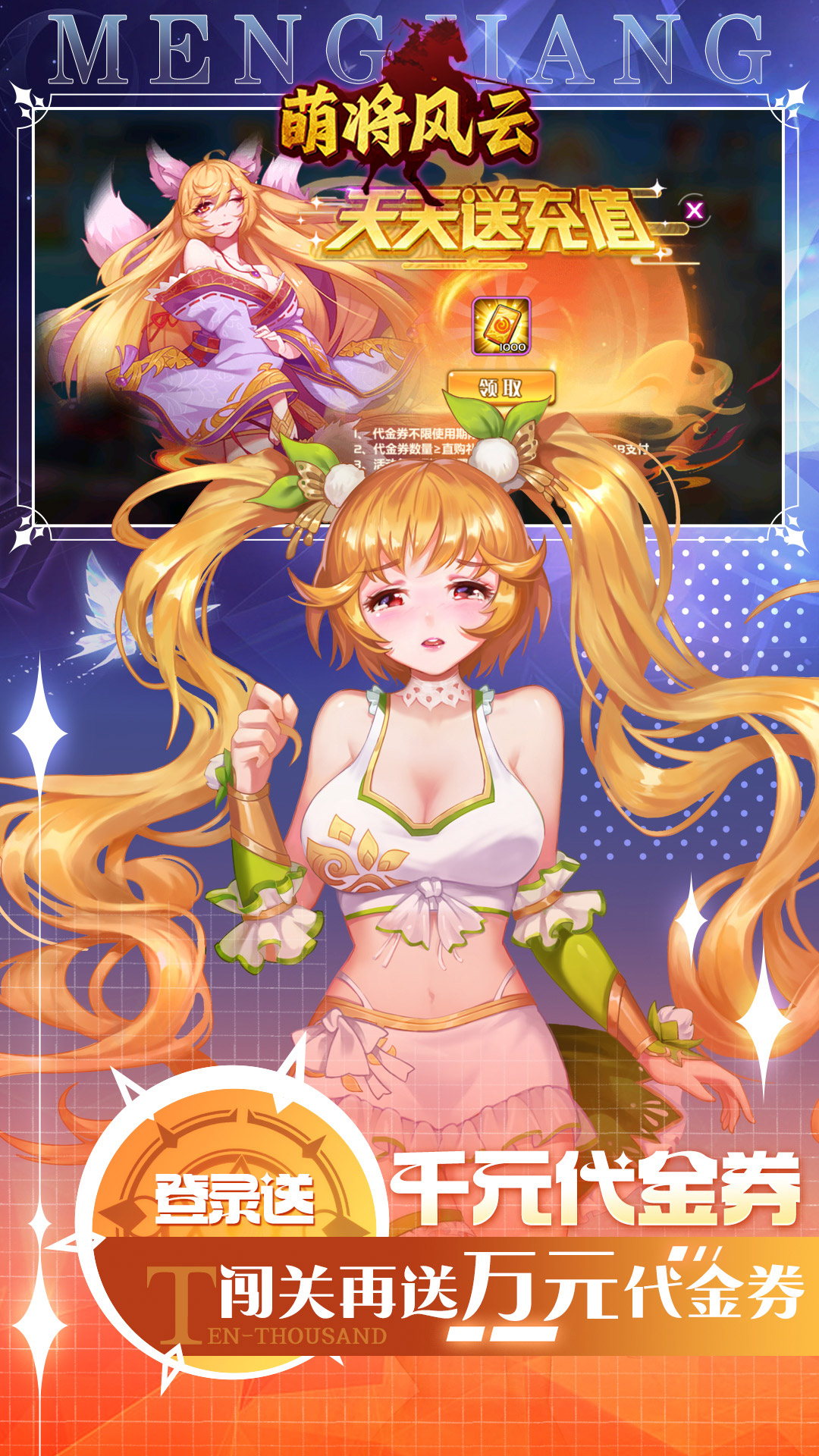 ★1 天天送代金:登录就送1000元代金券,闯关再送万元代金券! ★2 新增5个全新18资质武将 ,助你征战四方!★3 登录送1000连抽:每日登录即送十连,连续登录最高可得千抽福利!★4 登录送自选:连续登录即送精美皮肤自选宝箱,18神将自选宝箱! ★5 神将