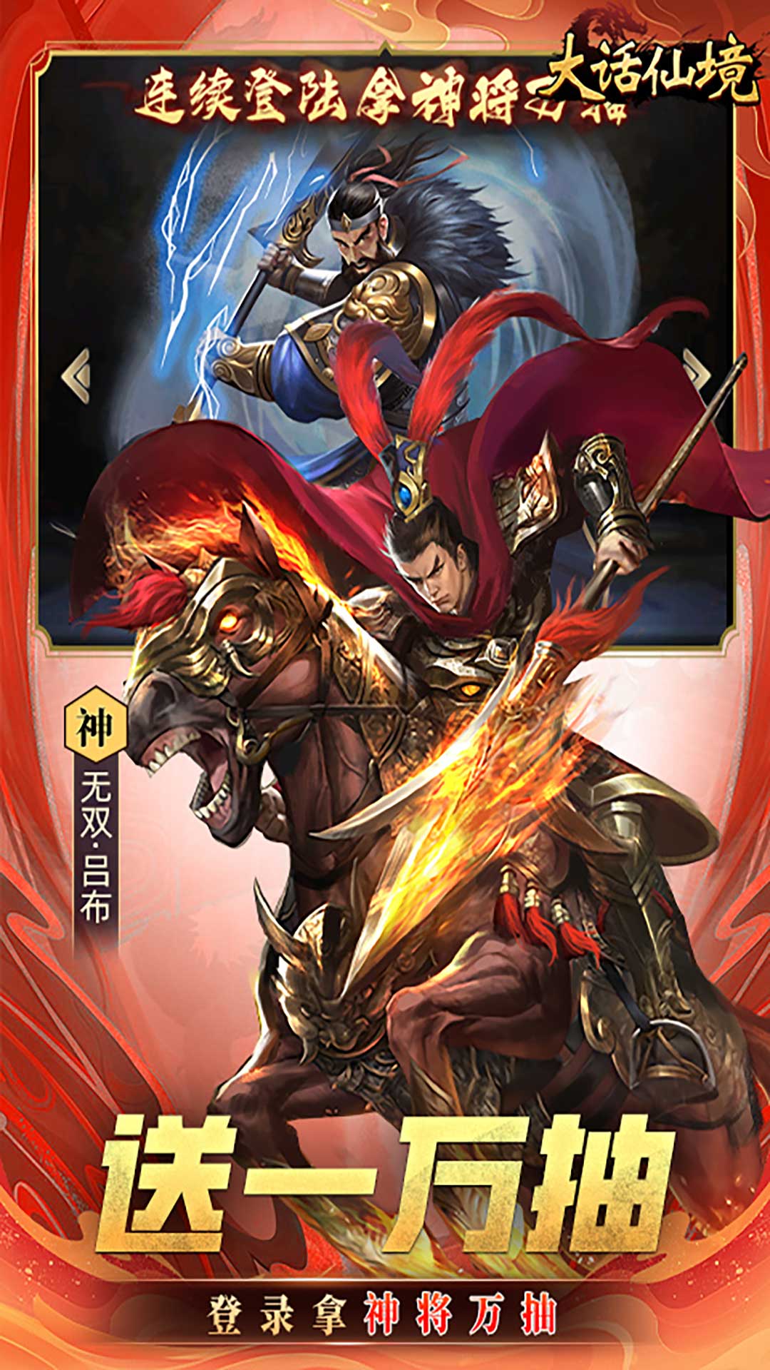 1.天天送648元无门槛可拆分代金券!2.全场充值首续0.1折,常规物价不涨价!3.每天商店有免费领取的福利奖4.每日登录还可以领取武将高抽累积领取无限抽!5.连续登录拿五十万元宝还有海量VIP经验免费领取!6.充值比例1:10