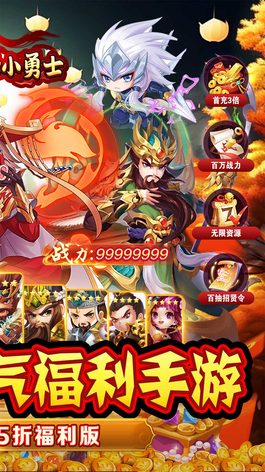 ★进游送五虎神将.马超★全场永久0.05折★全新狂飙刷充白嫖一切充值★登录即送100纳贤令、1000进阶突破石、1000培养突破丹、1000培养丹★每天登录狂送大量纳贤令、觉醒招募卡,所有英雄都得直接拿。★首充3倍返利