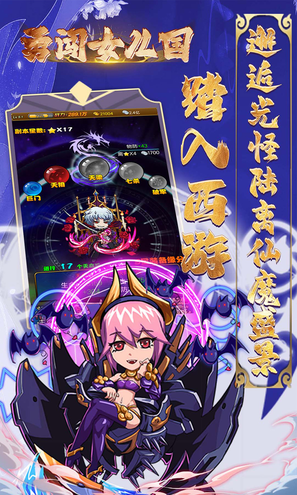这是一款Q萌风格的西游卡牌放置游戏!玩家将开启降妖除魔之旅,勇闯九九难关,向着成圣目标一路奋进。合战世界boss,体验热血群战的激情;深入地府,挑战神秘未知。在仙境冒险寻宝,到蟠桃园摘仙果强化自身。攀爬锁妖塔封印妖魔,还能参与巅峰竞技,与高手一决高下。挥舞如意金箍棒,横扫千军万魔,重温经典西游屠魔之旅,快来加入!