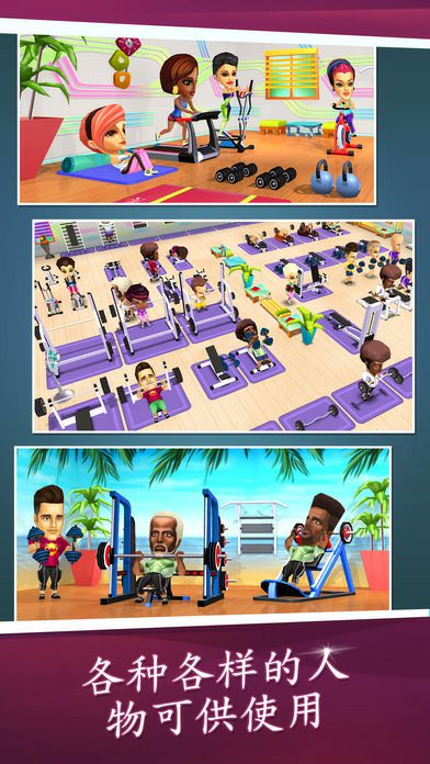 - 在这款有着完美身临其境的游戏体验和精美画面的游戏中,成为城里最有影响力的健身业者