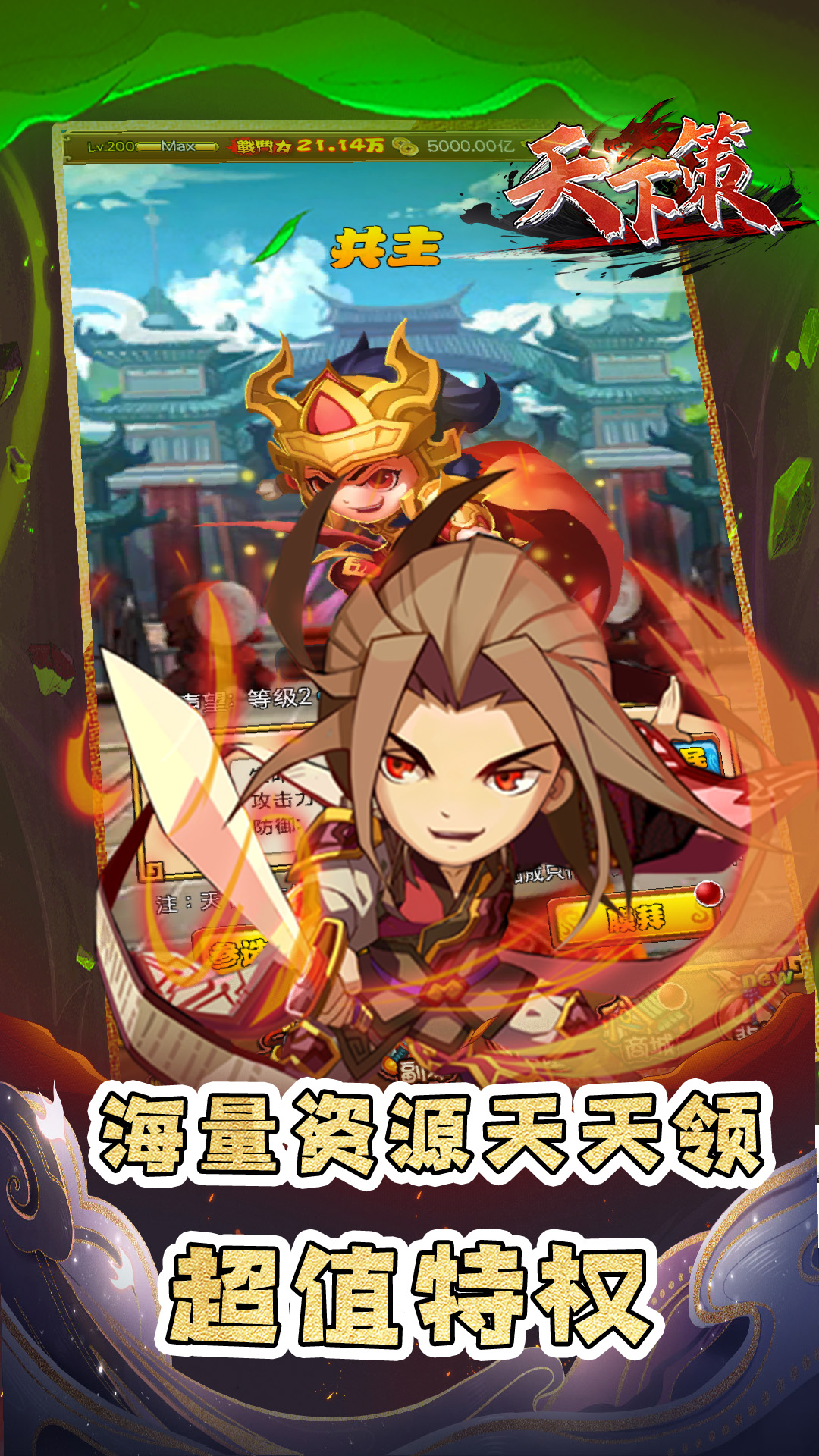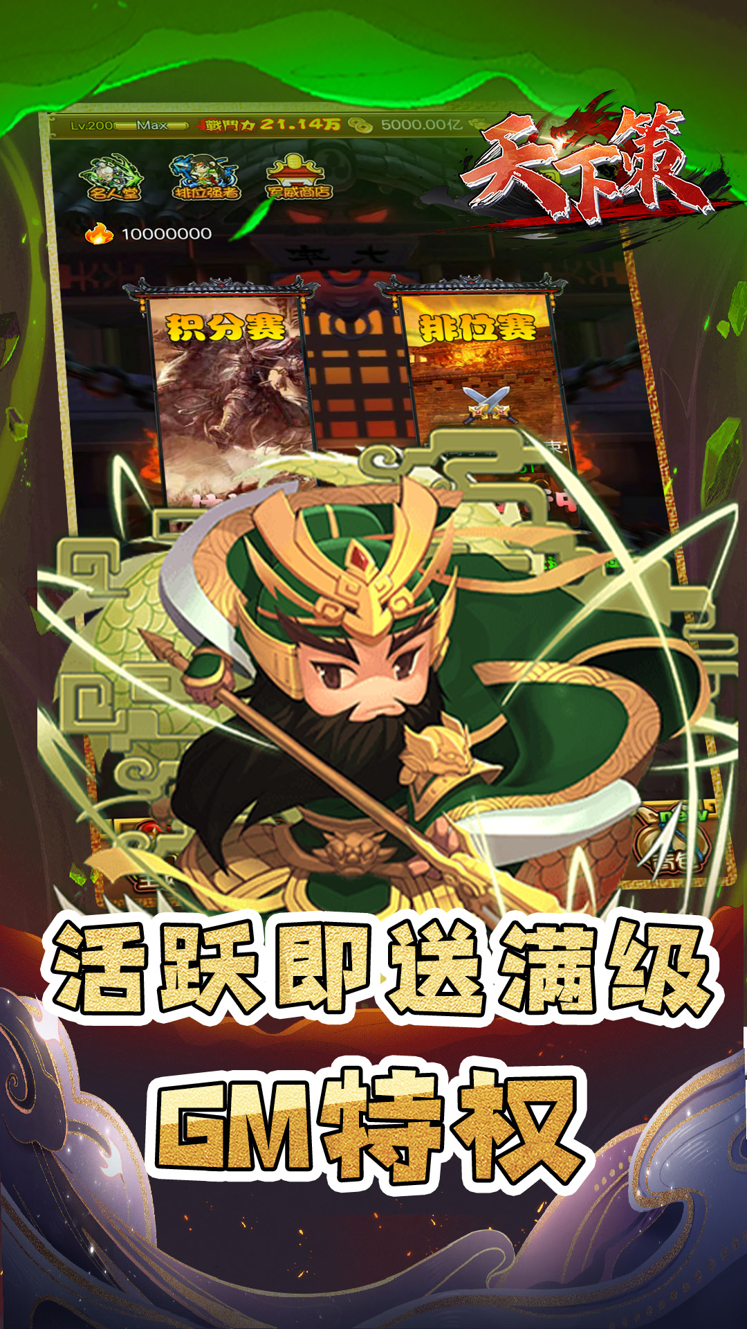 1¡¢×ðÏíºÀ»ªÀñ°ü£ºµÇ¼¼´ÔùVIP10×ð¹óÌØÈ¨£¬¸½Ôù1000Ôª¶î¶È¿¨Ò»ÕÅ¡¢88888Ôª±¦¡¢Å·»ÊÉñȯ50ÕÅ¡¢½ø½×µ¤5000¡¢1000ÍòÍÇ®¡¢×ÔÑ¡³¬Éñ½«Ò»Î»£¬Å̹ÅÌ××°×ÔÑ¡ËļþÌ×2¡¢Âò¶ÏÌØÈ¨£ºÂò¶ÏÐÄÒÇÎ佫3¡¢ºì°ü²»Í£Ðª£ºÉý¼¶¼´¿ÉÁìÈ¡ÍòÔªºì°ü£¬Í¨¹Ø¸üÓÐÍòÔªºì°üµÈÄãÄã¬ÍòÔª³äÖµÃâ·Ñ·ÅËÍ4¡¢GMÆÆ½âÉñÆ÷£ºÓµÓÐGMÆÆ½â¹¤¾ß£¬Ô¿¨¡¢ÖÕÉú¿¨ÇáËÉ°×æÎ¡£5¡¢ÎÞÏÞ³äÖµÌØÈ¨£ºÎÞÏÞÕæ³ä¡¢ÎÞÏÞÉñ³ä6¡¢×¨Êô¶¨ÖÆÓ¢ÐÛ×°±¸£ºÎªÄãÁ¿Éí´òÔìרÊôÓ¢ÐÛÓë×°±¸¡£7¡¢ÊÀ½çBOSSºÀÀñ£ºÌôÕ½ÊÀ½çBOSS£¬×î¸ß¿É±¬³öÍòÔª³äÖµ¿¨8¡¢³¬ÖµÌØÈ¨ÌìÌìÁ죺ÏíÊܳ¬ÖµÌØÈ¨