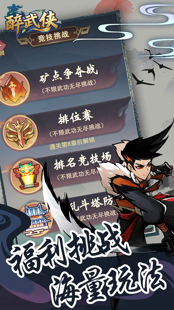 《醉武侠(0.05折天天送20000)》是一款武侠风格的休闲肉鸽游戏。每日登录自动送20000代金券,0氪也能当大佬!海量元宝、各种武功秘籍、侠客、法宝、珍贵道具。玩家在游戏中可以体验酣畅淋漓的战斗、丰富的系统玩法和日常活动,收集各种强力的功法招式和战斗伙伴。称霸全服,登顶最强宝座。