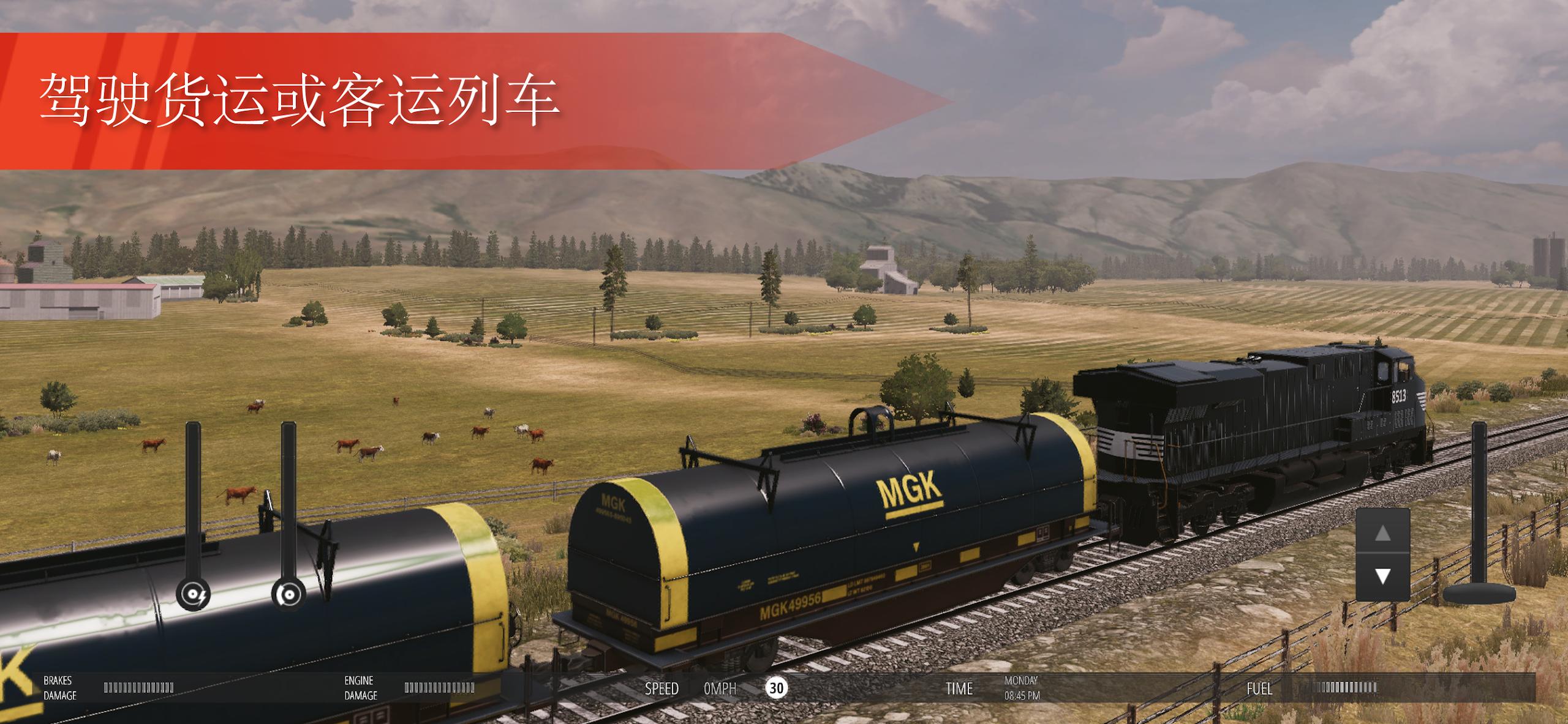 有大量的挑战等待完成,十几种不同的轨道车和货物类型,众多逼真的城市和车站可供解锁和探索,最重要的是,您可以通过这款游戏最具标志性的客运和货运机车的窗户发现美国的美丽风景。每个模拟器爱好者的必备品。