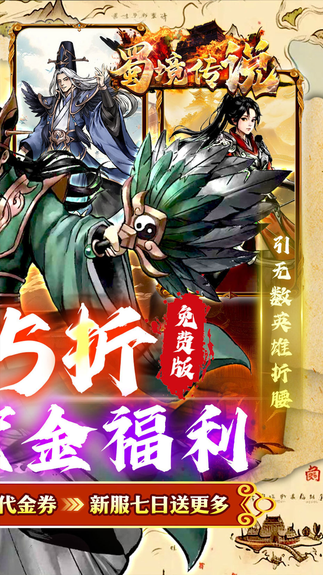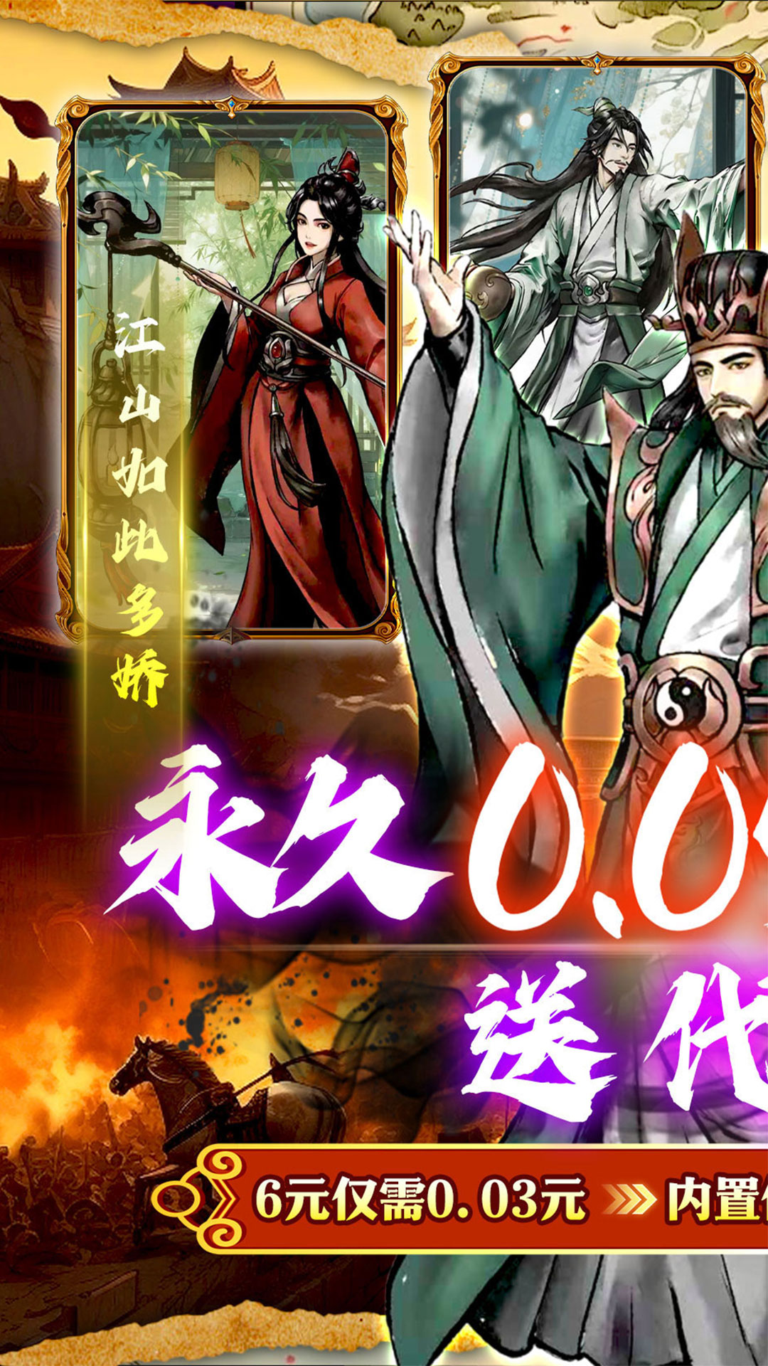 福利★:【永久0.5折】充值比例1:10,轻松畅玩;福利★:【免费代金券】每天登录直送万张代金券,一爽到底;福利★:【无限资源】无限资源购买叠加,一次买断,无限领取;福利★:【免费充值】可在充值页面直接使用充值额度支付,福利加倍;福利★:【免费千抽】通关主线免费千抽,顶级红将任选;福利★:【开箱三国】趣味三国,即休闲又养生,行侠仗义,过关斩将;