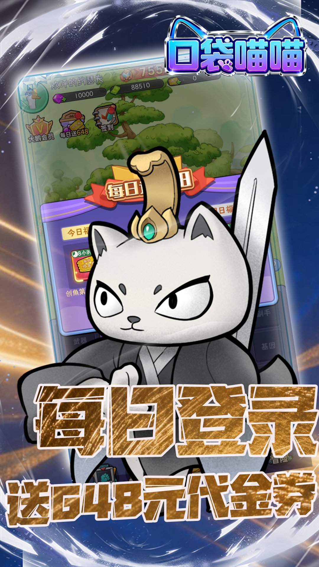 1:每日登录即送 648 元代金券2:登录送 888 体力、10000 钻石、限定坤鹅头像及传说能量核心3:累计七日签到可领取随机橙色伙伴,首次充值额外赠送橙色武器 “德州电锯”