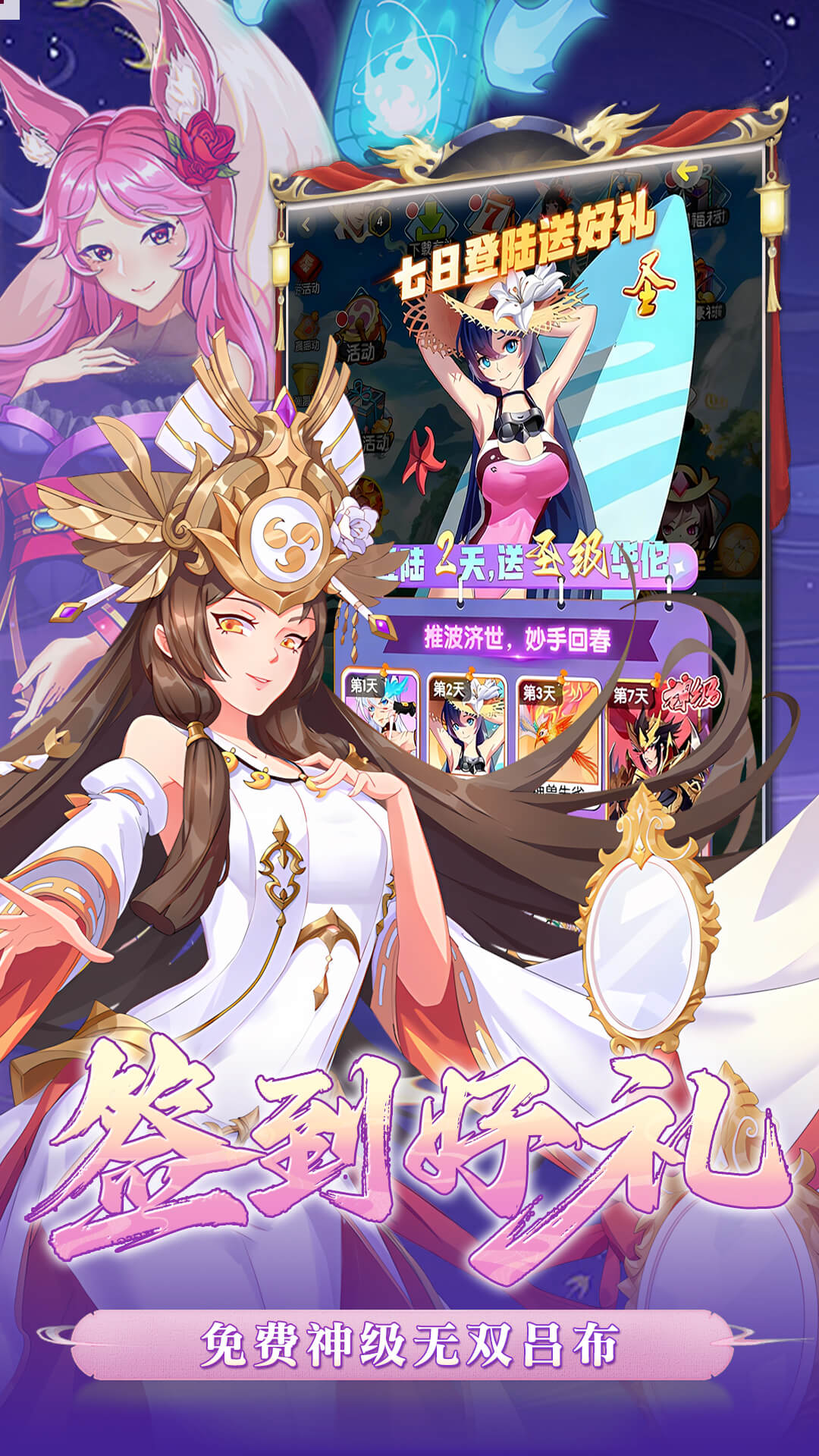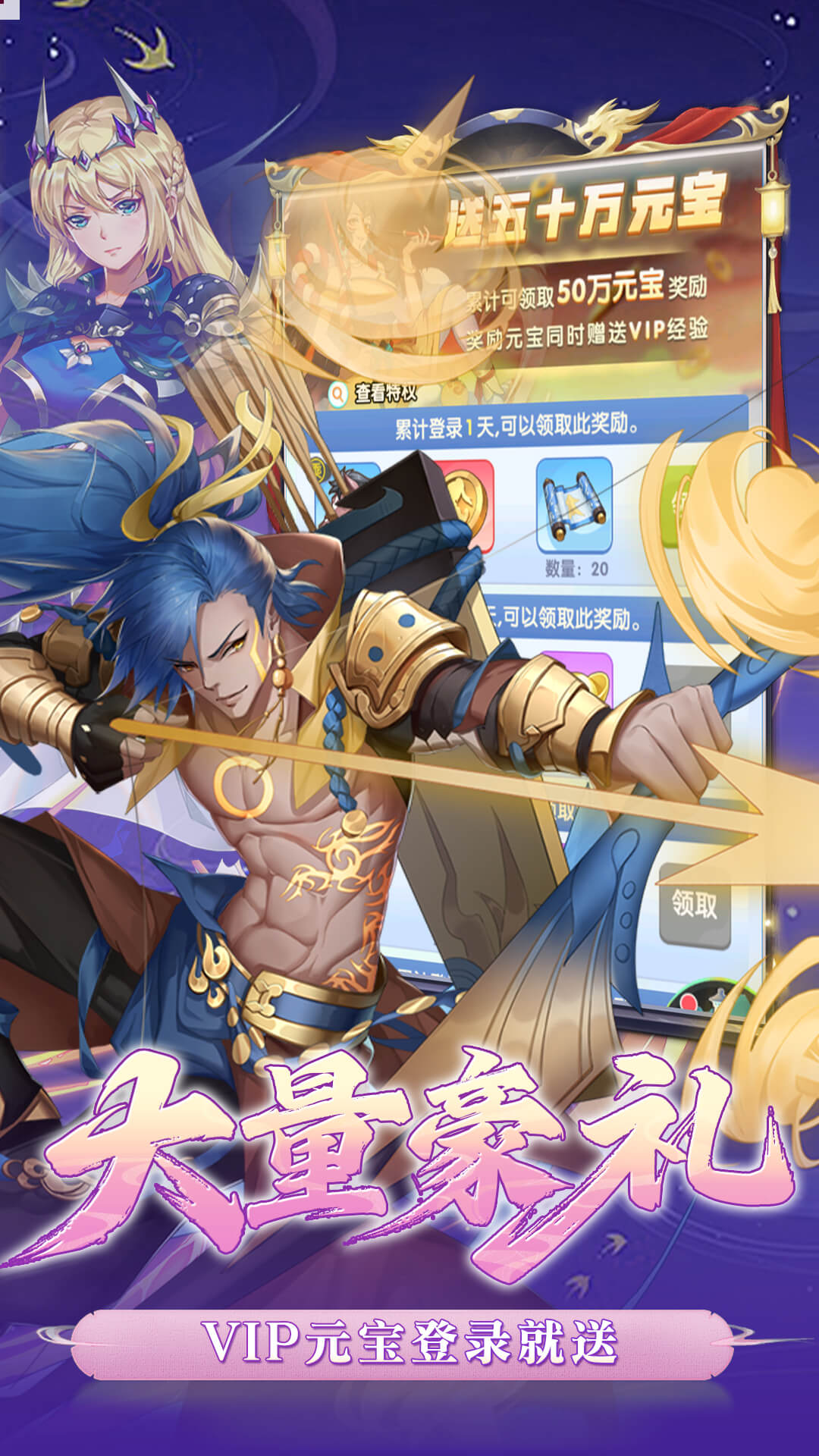 福利1:每天登陆送3280元宝福利2:VIP经验累计登陆免费送,再赠50w元宝福利3:累计登录送神级天下无双吕布,升级免费送伙伴福利4:培养材料免费天天送,神级伙伴培养不用愁福利5:首充就送圣级伙伴女魃助力征战三界 福利6:游戏内全部充值0.1折,首充续充统统0.1折