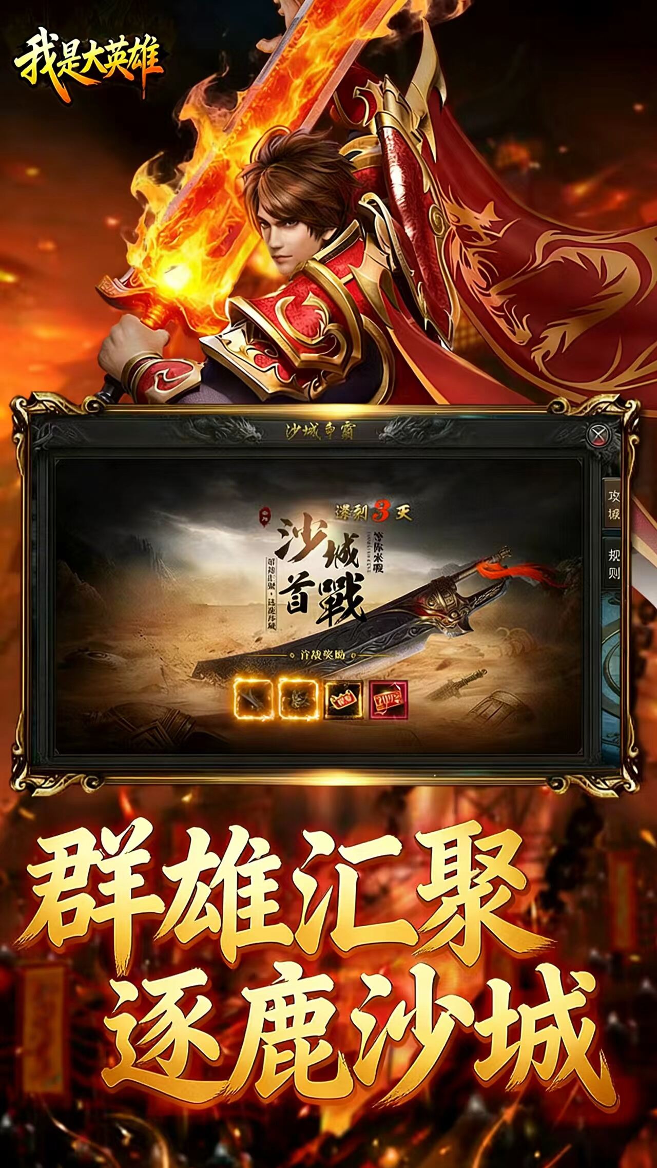 《我是大英雄(3.5折热血沙城)》这是一款多人在线的ARPG游戏。经典传奇,再战沙场!英雄合体全新玩法解锁,开放多线英雄培养,合击技能新体验!经典传奇地图,多样装备体系,体验全新PVE和PVP、跨服攻沙等多种世界交互玩法。自由PK、万人攻沙,决战千里之外!皇城之战,谁与争锋!开启属于你的传奇霸业。