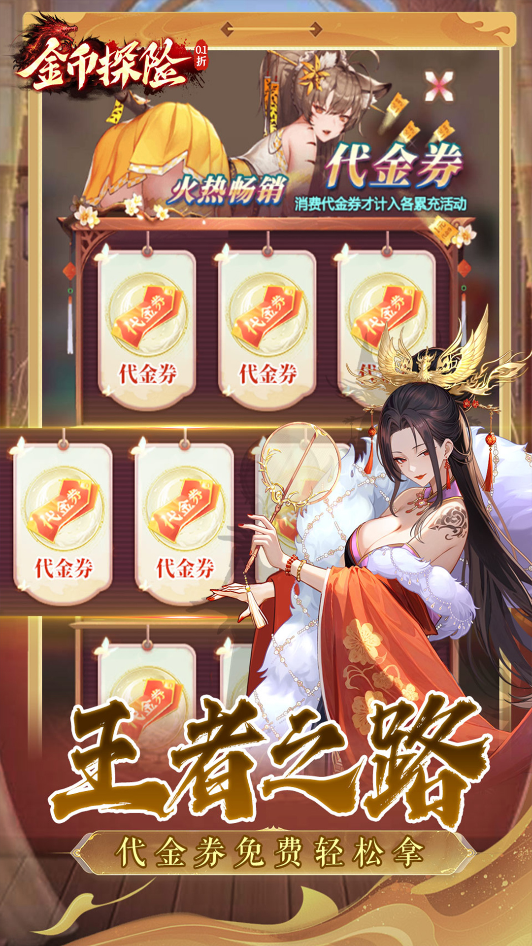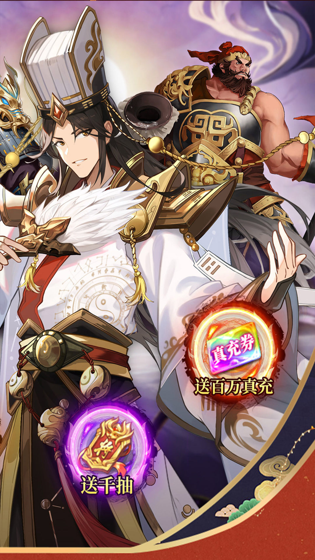 1、王者之路,代金劵免费拿2、通关豪礼,送千抽,轻松实现三国霸业!3、送百万真充,免费激活贵族等级4、核心UR神将免费送至10星,助你横扫三国,制霸全服!5、限时充值返利,永久0.1折超值优惠,畅享充值乐趣!6、创角即送海量资源、培养材料等你来领,助力升级无压力!7、开服庆典,完成考核即可免费获得UR诸葛亮8、独创「武将链接」机制,无需重复抽卡