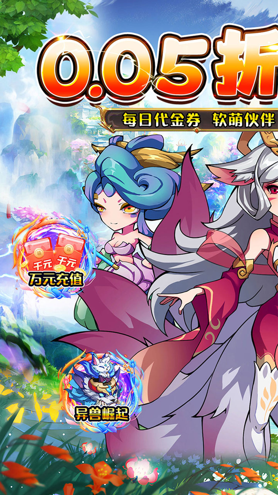 福利★:充值比例1:10,游戏充值永久0.05折,玩到爽;福利★:登录送VIP10,每日领百抽,天天送货币;福利★:无限资源,一次买断,无限领取,轻松养老;福利★:每日签到领取万元代金券,买买买,不花冤枉钱;福利★:送强力异兽、山海相伴,领海量养成道具;