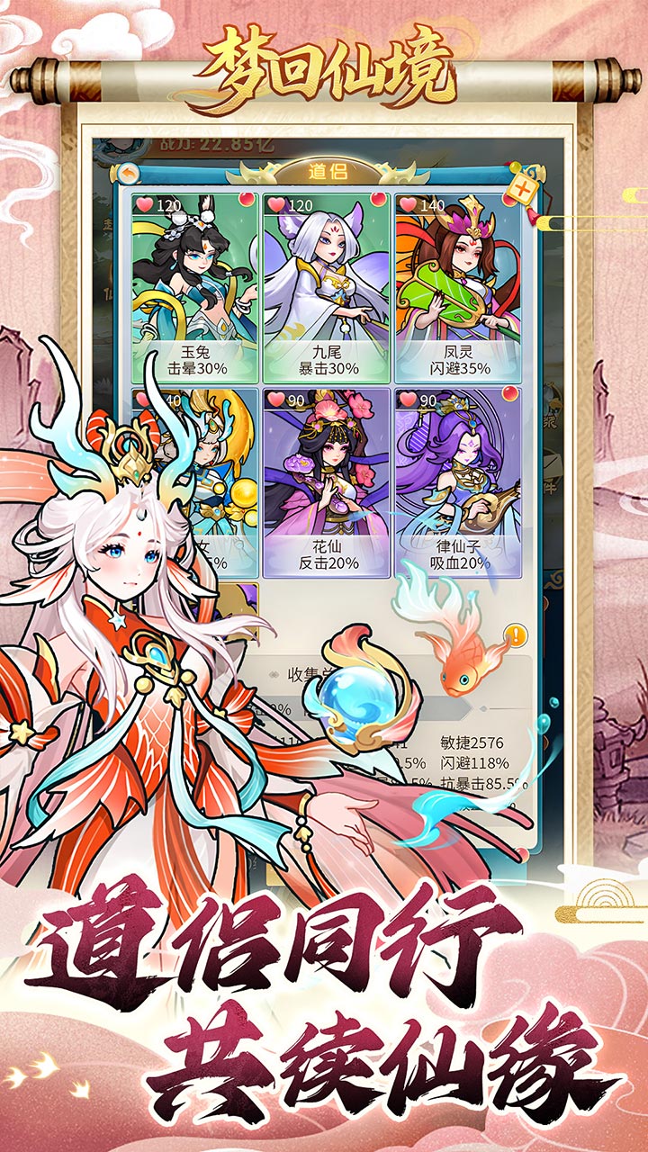 《梦回仙境(0.05折得道成仙)》是一款修仙题材的角色扮演养成游戏,玩家可以在游戏中自由探索属于自己的仙侠世界,养成属于自己的灵宠、法宝等。游戏整体画面精致、明亮艳丽,玩法轻松无压力,游戏操作也十分简单易上手并可以自动游戏解放双手。