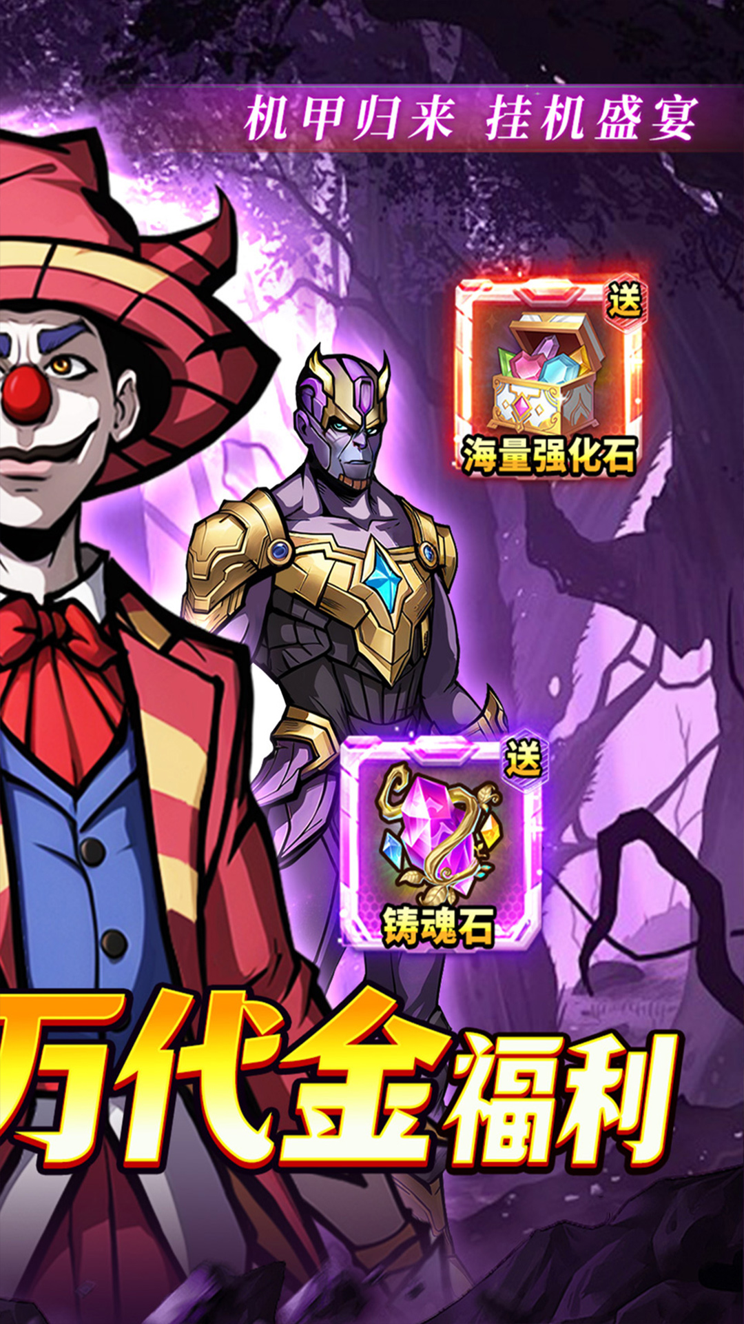《机甲归来》是一款充满美漫风格的MMO挂机游戏,它以精彩的特效和丰富的玩法为核心,带你进入一个前所未有的机甲战斗世界。游戏内,充值仅需0.1折的超值优惠,让你充值648元仅需6.48元,同时享受代金券最高10倍膨胀的福利。创角即送豪华大礼包,包括铸魂石、魔力、宝石、金币和强化石等珍稀资源,助你快速成长,轻松称霸。在这里,你可以随时挂机升级,也可以挑战各种精彩副本,与好友组队并肩作战,共同探索机甲世界的无限可能。