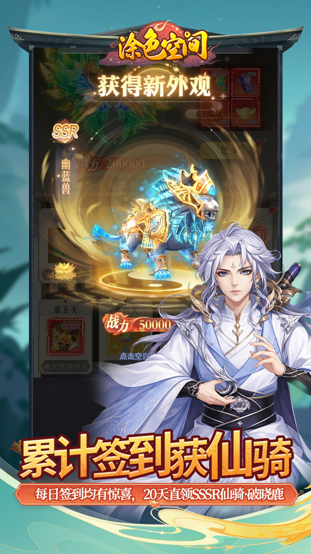 创角即领万元礼:创建角色即得万元礼品卡,可多次开启多重奖励闯关直升VIP10:成功挑战50层关卡,即刻解锁永久VIP10特权七日登录领侍神:七日奖励不重样,最终可得UTR水系侍神累计签到获仙骑:每日签到均有惊喜,20天直领SSSR仙骑·破晓鹿全服永久超低折: 充值享0.1折持续优惠,轻松修仙畅玩无忧