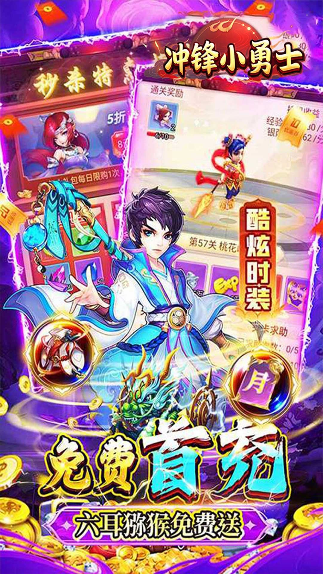 超人气西游回合题材手游《冲锋小勇士》带着超级福利来袭了,绝对是你以往没有体验过的快乐。开局满V,8888888元宝,888万银两,海量材料,限定称号称号*1。特色GM刷充,上线送超强打金工具,打怪爆免单券,不花一分钱也能当大佬,全神兽礼包,一包烟钱即可获得满神兽。你将生处妖魔纵横之乱世,开启热血的诛妖之路,参与征伐纣王的旷世之战。感受人、仙、魔三界魅力,斗天地镇众妖,开启属于你的封神传说。