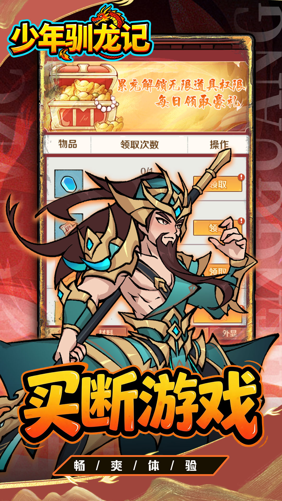 1.免费代金:每天登录1w代金券,消耗可激活游戏内GM买断!2.GM买断:游戏内充值0.1折买断游戏,想要什么自己发!!3.百万充值:海量充值卡每天登录即可领取,还可双倍领取根本花不完!4.买断礼包:购买即得返代金券,神品外观,代金券天天免费领取!