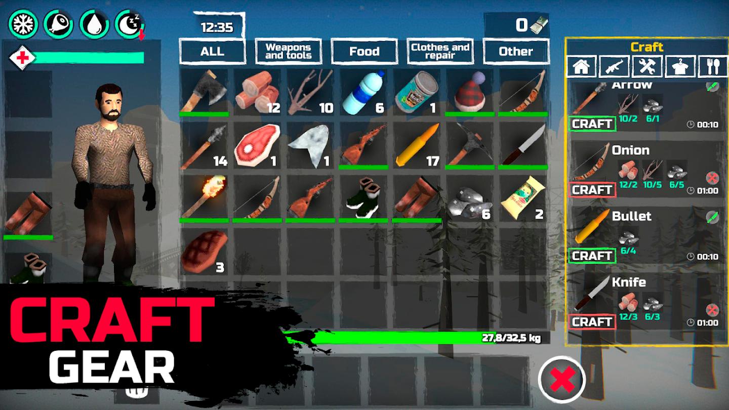 许多冒险等待着您:在森林中生存、探索、狩猎、采集和制作。你必须学习很多才能生存:获取食物、融雪、狩猎动物和生火!