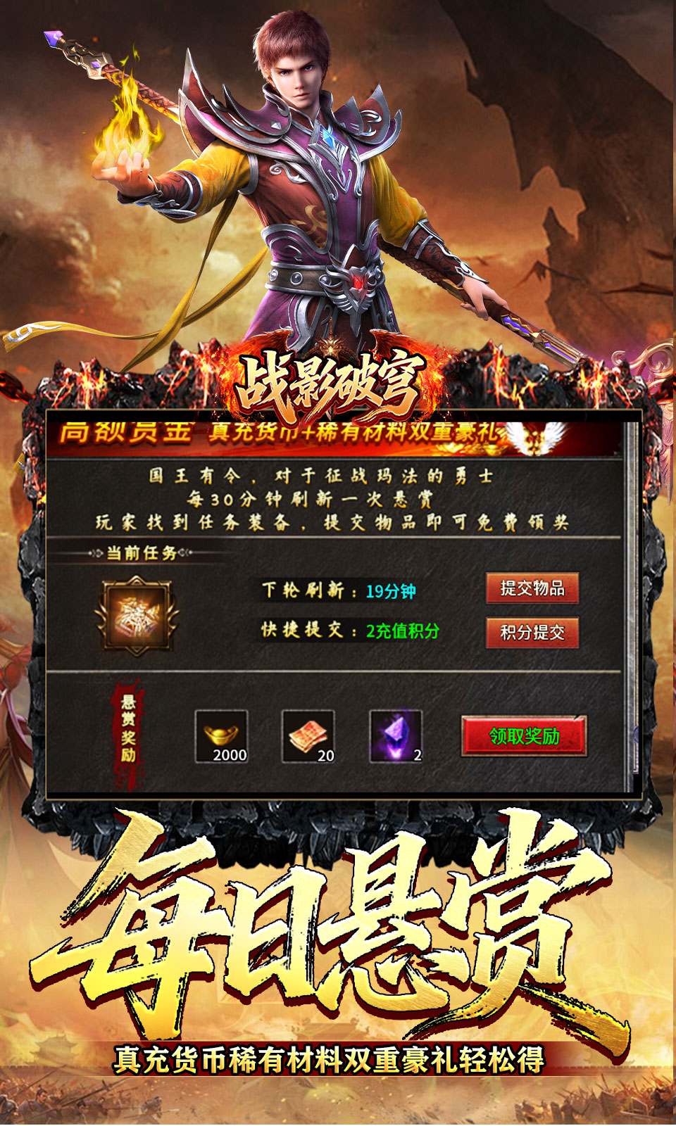 每日悬赏任务轻松完成,不仅能获得海量真充货币,用于商城任意消费,更能直接赢取稀有锻造材料、高级技能书等珍贵资源。日常变强,惊喜不断!