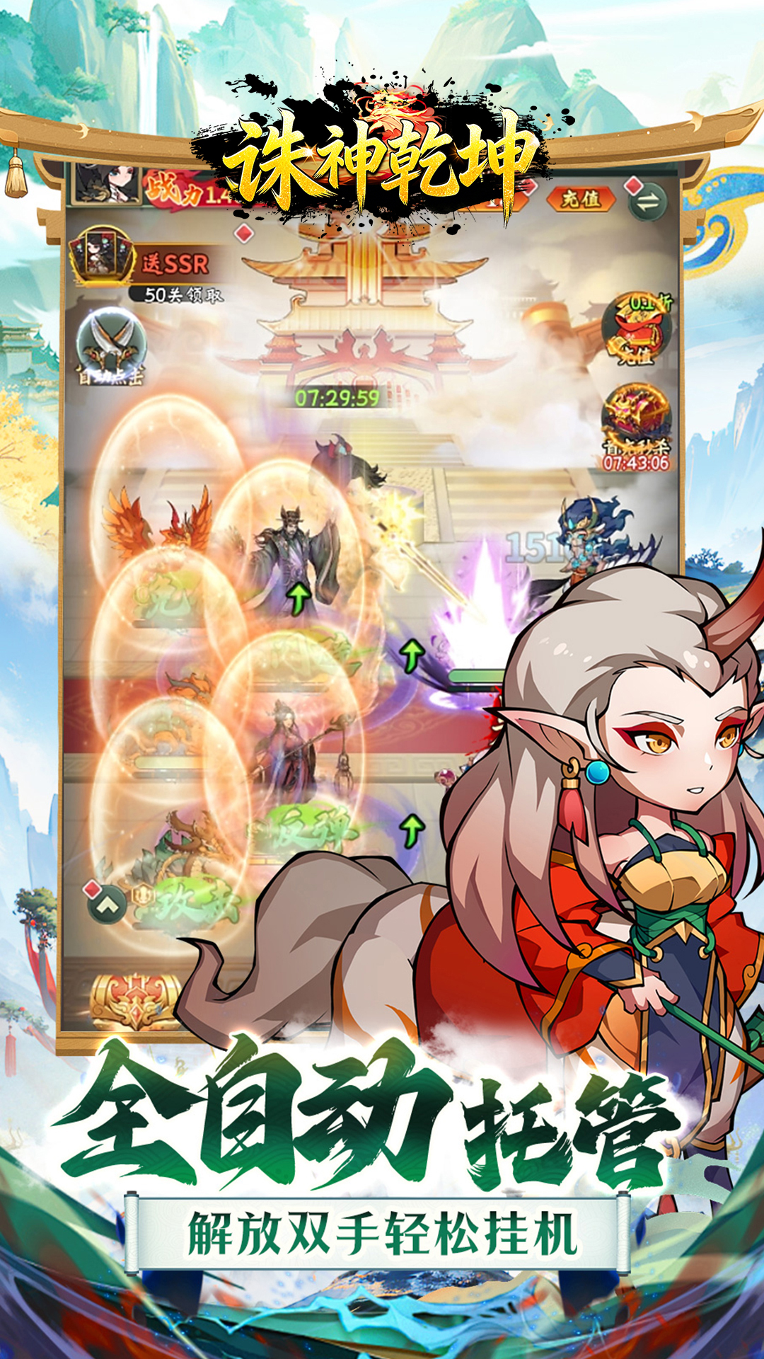 重温经典,共赴山海《诛神乾坤》是一款高度还原山海经的咸鱼放置卡牌游戏。游戏中可以收集到众多的奇珍异宝和山海神兽,玩法轻松休闲福利全面升级,还有超多免费充值燃情助力。革新融合多重PVE、PVP玩法和趣味养成路线,全自动托管让游戏变得更为简单,即刻开启全新山海旅程!