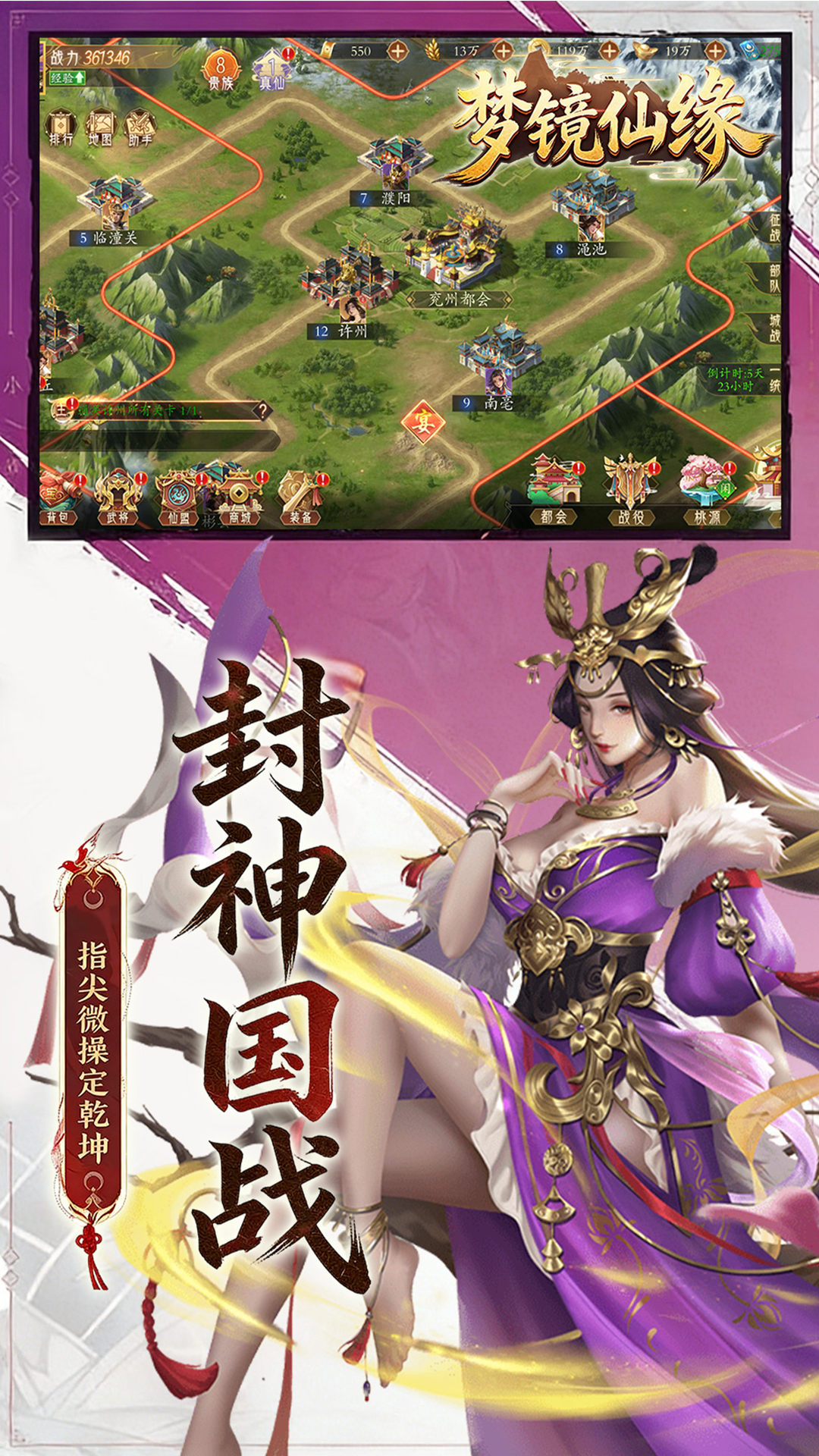 《梦镜仙缘》是一款以封神题材为背景的策略攻城国战手游,在这里,有众多耳熟能详的封神人物,您可招募神将,在一座座城池战场之中操控专属自己的队伍拼搏厮杀,沉浸式战斗演绎封神万象,极致策略布局掌控战局乾坤。神魔乱舞之际,挥师征伐四方,以谋定天下,以热血铸荣光,属于你的封神史诗,自此开启!